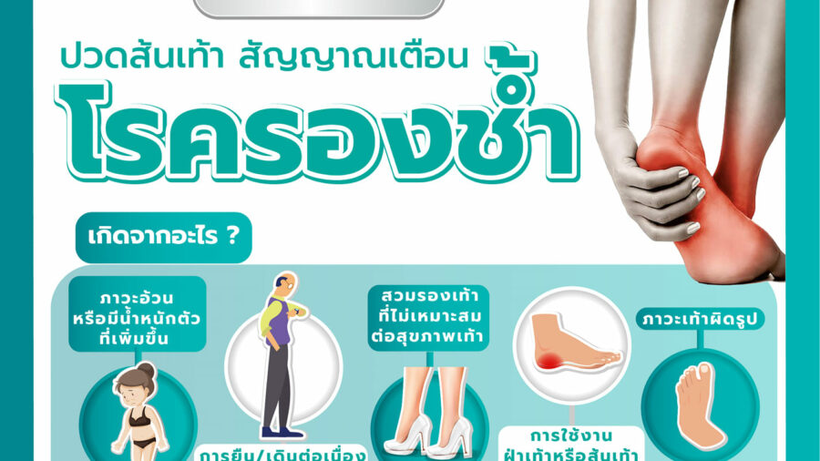 รศ.นพ.ธนวัฒน์ วะสีนนท์ อาจารย์ประจำหน่วยเท้าและข้อเท้า ภาควิชาออโทปิดิกส์ คณะแพทยศาสตร์ มช. กล่าวว่า “โรครองช้ำหรือโรคที่เกิดจากการบาดเจ็บของเส้นเอ็นฝ่าเท้า ลักษณะอาการจะปวดรุนแรงที่สุดเมื่อเริ่มมีการลงน้ำหนักที่ส้นเท้าในก้าวแรก เช่น เมื่อลุกเดินก้าวแรกหลังตื่นนอน และดีขึ้นหลังจากเดินสามก้าว หรือกดเจ็บที่ใต้ส้นเท้า ในขณะที่กระดกข้อเท้าขึ้น นอกจากนี้ อาจมีอาการปวดมากขึ้นได้ในช่วงระหว่างวันหรือหลังจากที่เท้าต้องรับน้ำหนักเป็นเวลานาน เช่น ยืนหรือเดินเป็นเวลานาน และเมื่อมีการเคลื่อนไหวมากขึ้นก็จะยิ่งมีอาการปวดมากขึ้น แม้จะดูเหมือนโรคนี้ไม่อันตรายร้ายแรง แต่ก็ไม่ควรปล่อยทิ้งไว้โดยไม่ทำการรักษา เพราะอาจส่งผลกระทบต่อการทำกิจวัตรประจำวันได้
