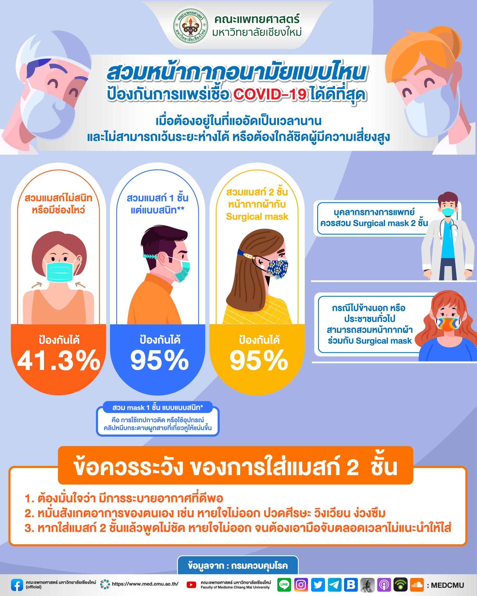 สวมหน้ากากอนามัยแบบไหน ป้องกันการแพร่เชื้อ COVID-19 ได้ดีที่สุด ?