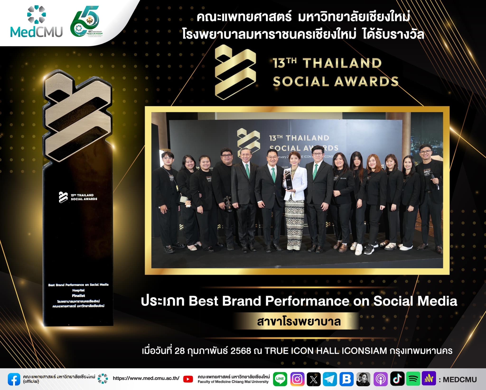 🏆💚คณะแพทยศาสตร์ มช. ได้รับรางวัล Best Brand Performance on Social Media สาขา Hospital ในงาน Thailand Social Awards ครั้งที่ 13