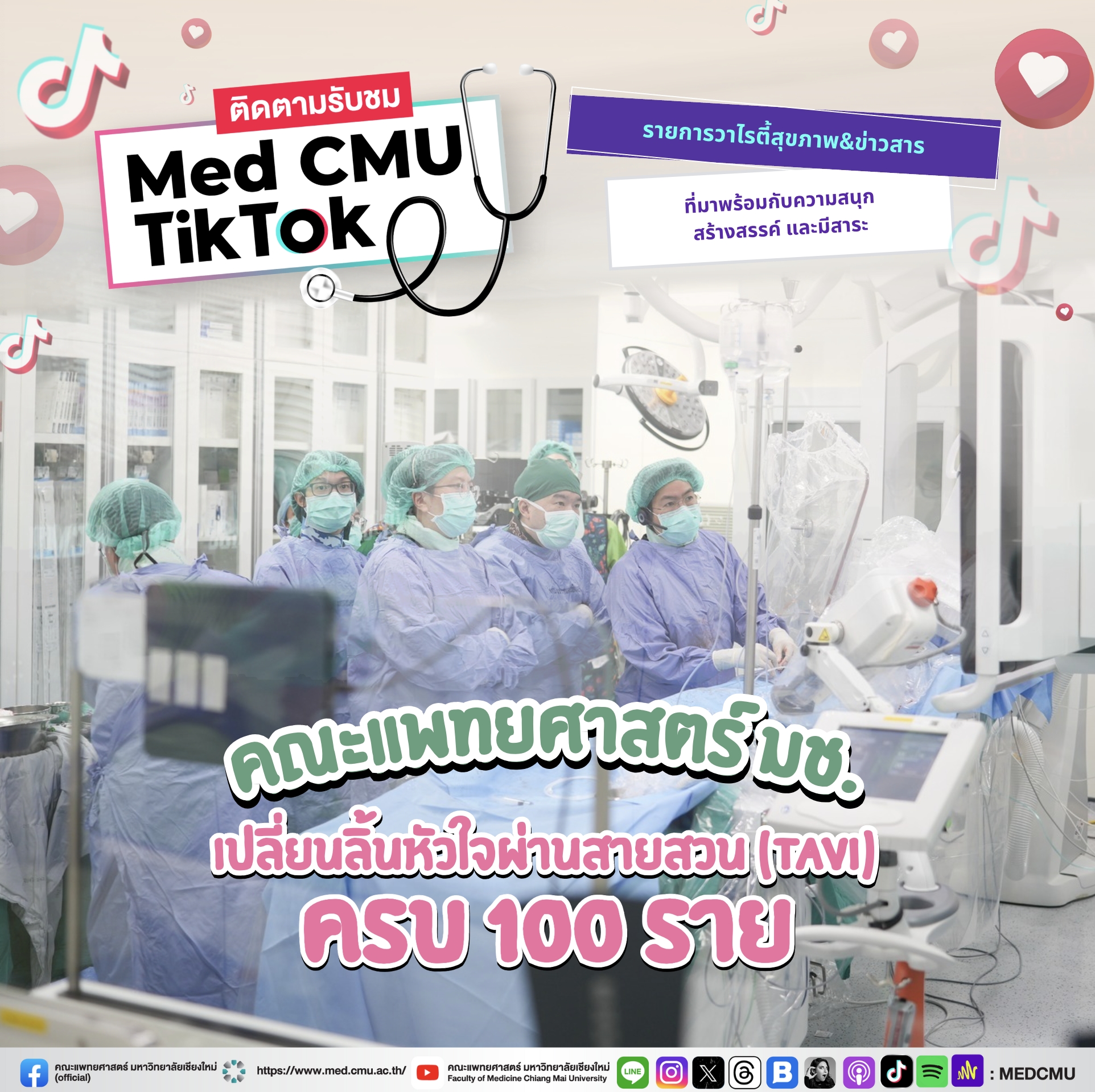 🫀🩺 คณะแพทยศาสตร์ มหาวิทยาลัยเชียงใหม่ ประสบความสำเร็จในการรักษาผู้ป่วย ด้วยหัตถการเปลี่ยนลิ้นหัวใจผ่านสายสวน (TAVI) โดยไม่ต้องผ่าตัด ครบ 100 ราย