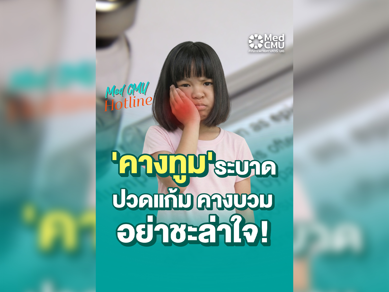 🧑🏻⚕️”โรคคางทูม กลับมาระบาดในช่วงหน้าหนาว แพทย์ มช. แนะ ปวดแก้ม คางบวม ควรแยกตัว และรีบพบแพทย์” ติดตามรายละเอียดได้ใน Med CMU Hotline