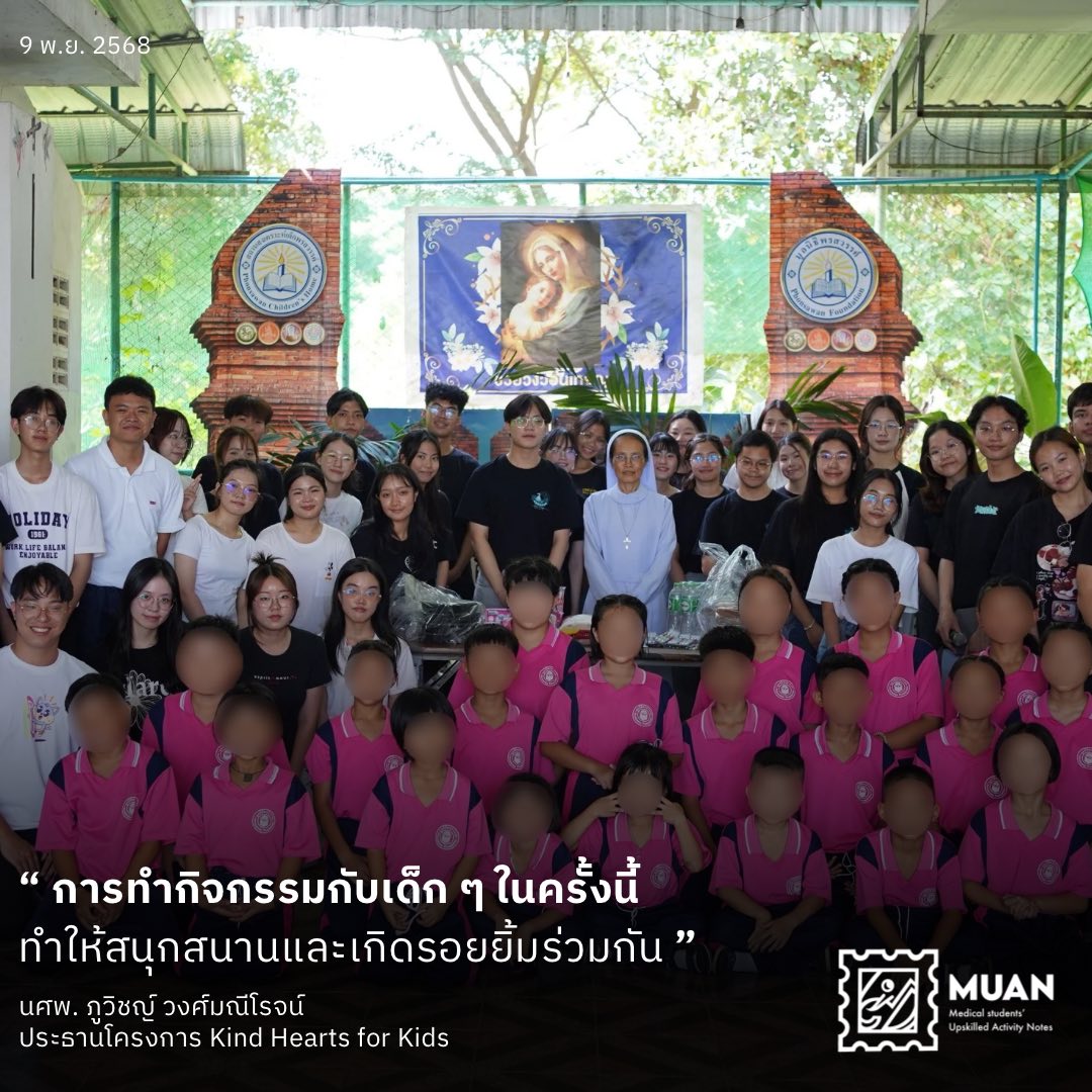 “โครงการครั้งนี้ถือเป็นประสบการณ์ที่ดีสำหรับนักศึกษาแพทย์ในการเรียนรู้การทำงานเป็นทีมและการทำกิจกรรมเพื่อสังคม นอกจากเด็ก ๆ จะได้รับความรู้แล้ว ยังได้เห็นคุณค่าของการดูแลสุขภาพตั้งแต่เล็ก ๆ อีกทั้งยังได้ทำกิจกรรมอย่างสนุกสนานและมีรอยยิ้มร่วมกัน” – นศพ. ภูวิชญ์ วงศ์มณีโรจน์ ประธานโครงการ Kind Hearts for Kids