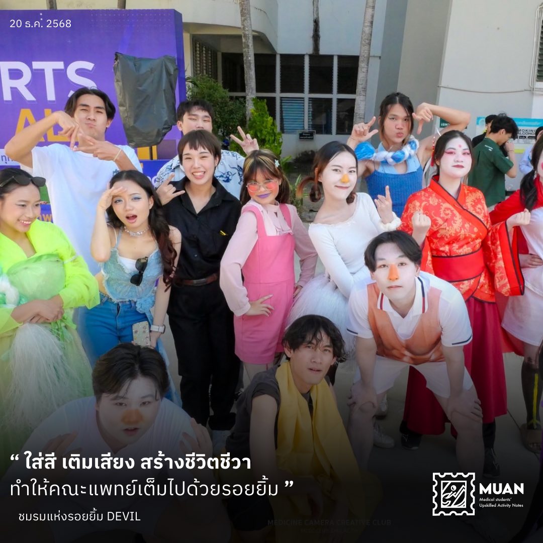 จุดพีคที่สุด คือการเปิดตัวในงานเฉลยชื่อรุ่น ซึ่งเรียกได้ว่าเป็นไฮไลต์แบบอันดับหนึ่งของปี ที่ทั้งคณะตั้งตารอ พวกเขาขึ้นเวทีพร้อมพลังสุดล้น หยิบจับเทรนด์บนโซเชียล ไม่ว่าจะเป็นมีม มุกไวรัล คลิปดัง หรือ วัฒนธรรมป๊อปแบบมาแรง แล้วแปลงเป็นโชว์ที่ยกระดับความบันเทิงขึ้นไปอีกหลายร้อยเปอร์เซ็นต์ จนทุกคนต้องปรบมือและหัวเราะจนน้ำตาเล็ดเลยทีเดียว บอกเลยว่า DEVIL ไม่ได้เป็นแค่ทีมสันทนาการ แต่เป็นตัวตนสีสันที่ทำให้คณะแพทย์อบอุ่น สนุก และมีชีวิตชีวามากขึ้นในทุก ๆ ปี จริง ๆ