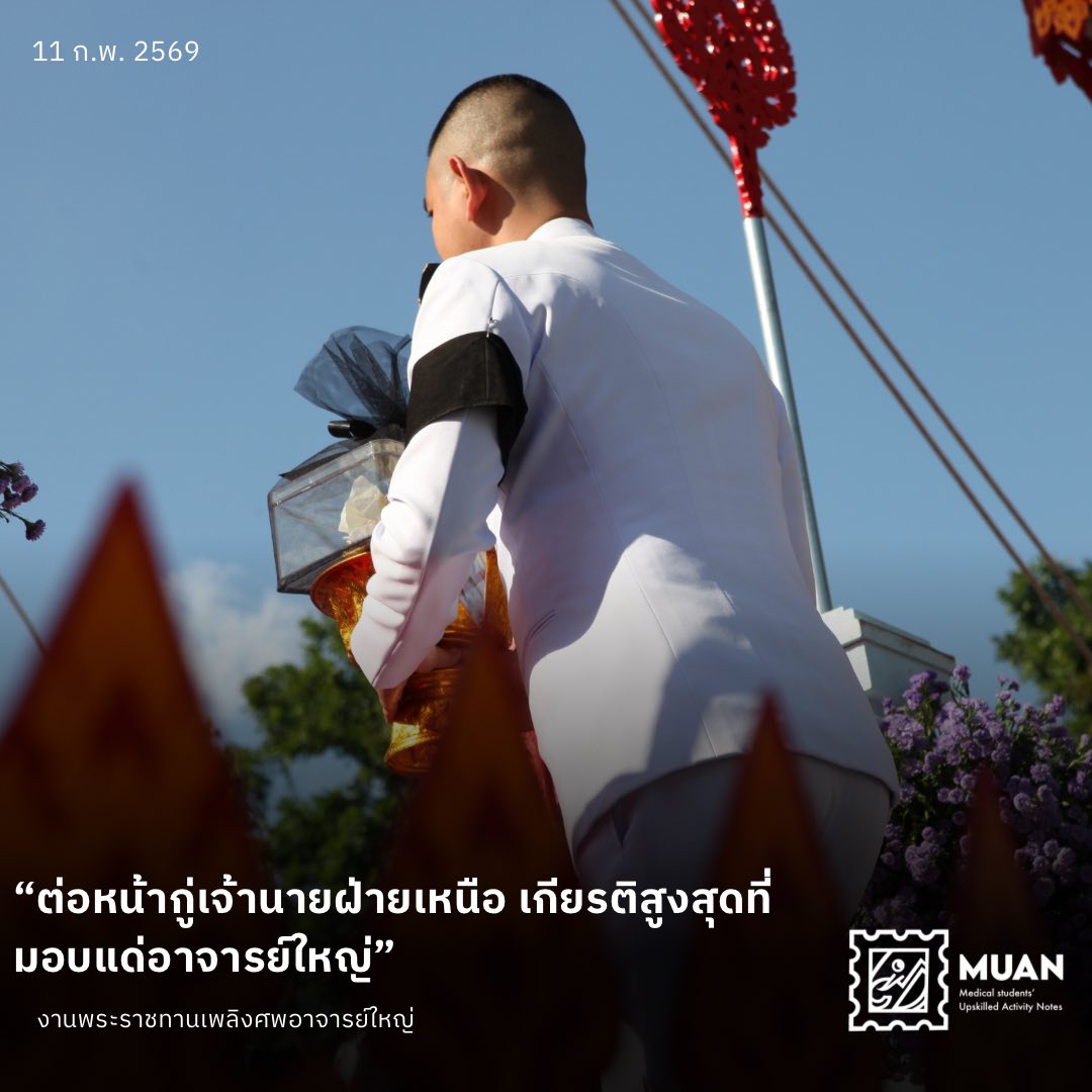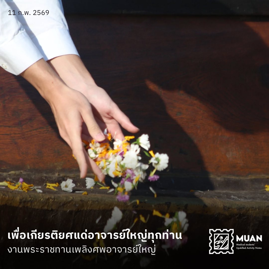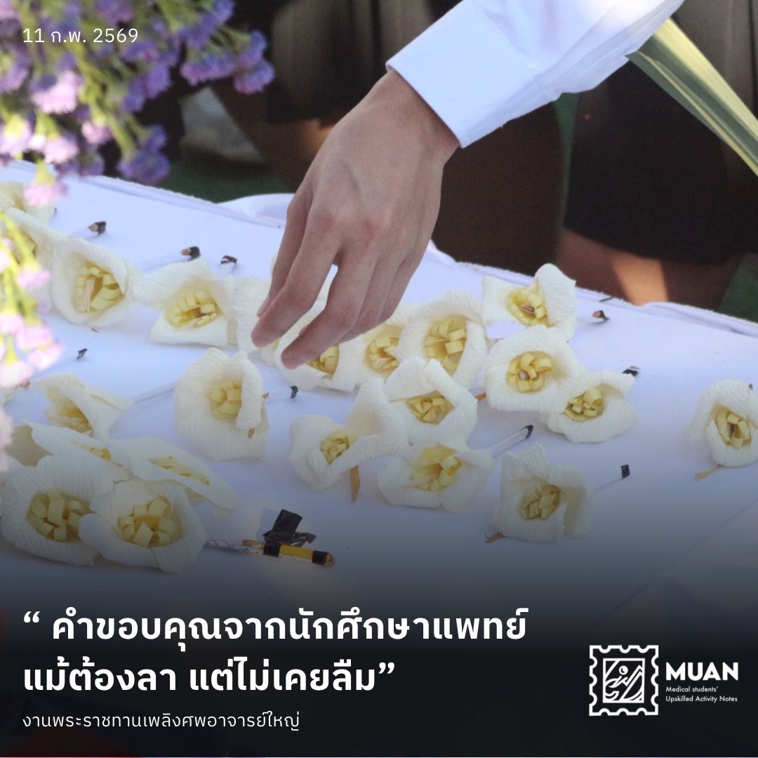 นักศึกษาแพทย์ชั้นปีที่ 2 และผู้ที่ได้เข้าศึกษาร่างอาจารย์ใหญ่ทุกคนรู้สึกยินดีและเป็นเกียรติอย่างมากที่ได้มีส่วนร่วมในการจัดพิธีครั้งนี้ พวกเราขอขอบคุณการเสียสละอันยิ่งใหญ่นี้ และขออวยพรให้การเดินทางของทุกท่านต่อจากนี้ราบรื่น แม้จะต้องบอกลากัน แต่ความทรงจำจะอยู่ในใจพวกเราตลอดไป