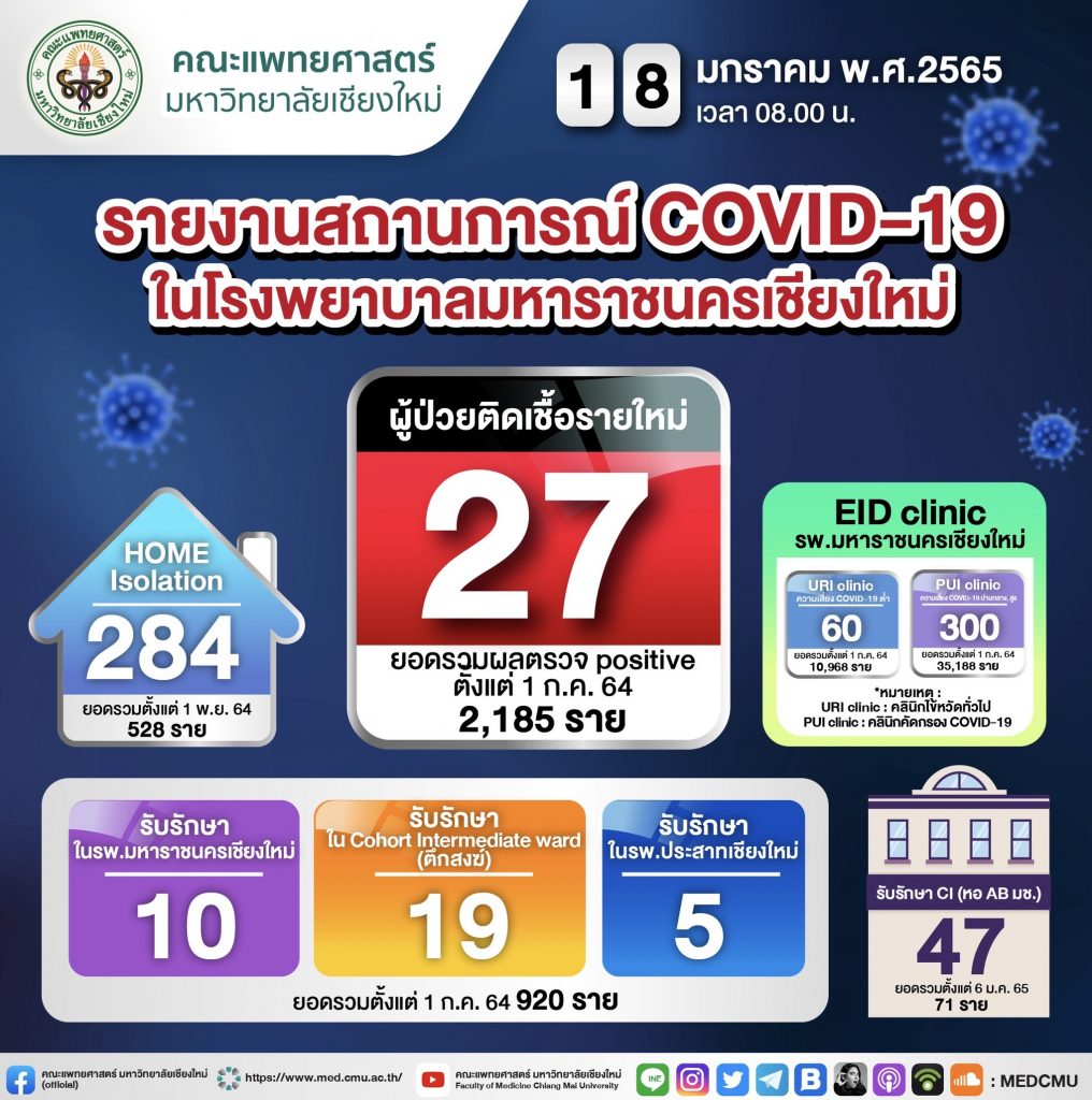 สถานการณ์ผู้ป่วย COVID-19 ในความดูแลของคณะแพทยศาสตร์ มหาวิทยาลัยเชียงใหม่ วันที่ 18 ม.ค. 2564 : 08:00 น.
