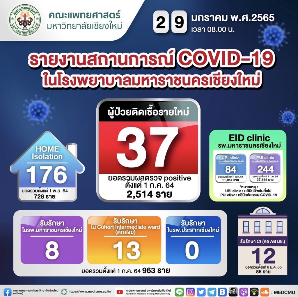 สถานการณ์ผู้ป่วย COVID-19 ในความดูแลของคณะแพทยศาสตร์ มหาวิทยาลัยเชียงใหม่ วันที่ 29 ม.ค. 2565 : 08:00 น.