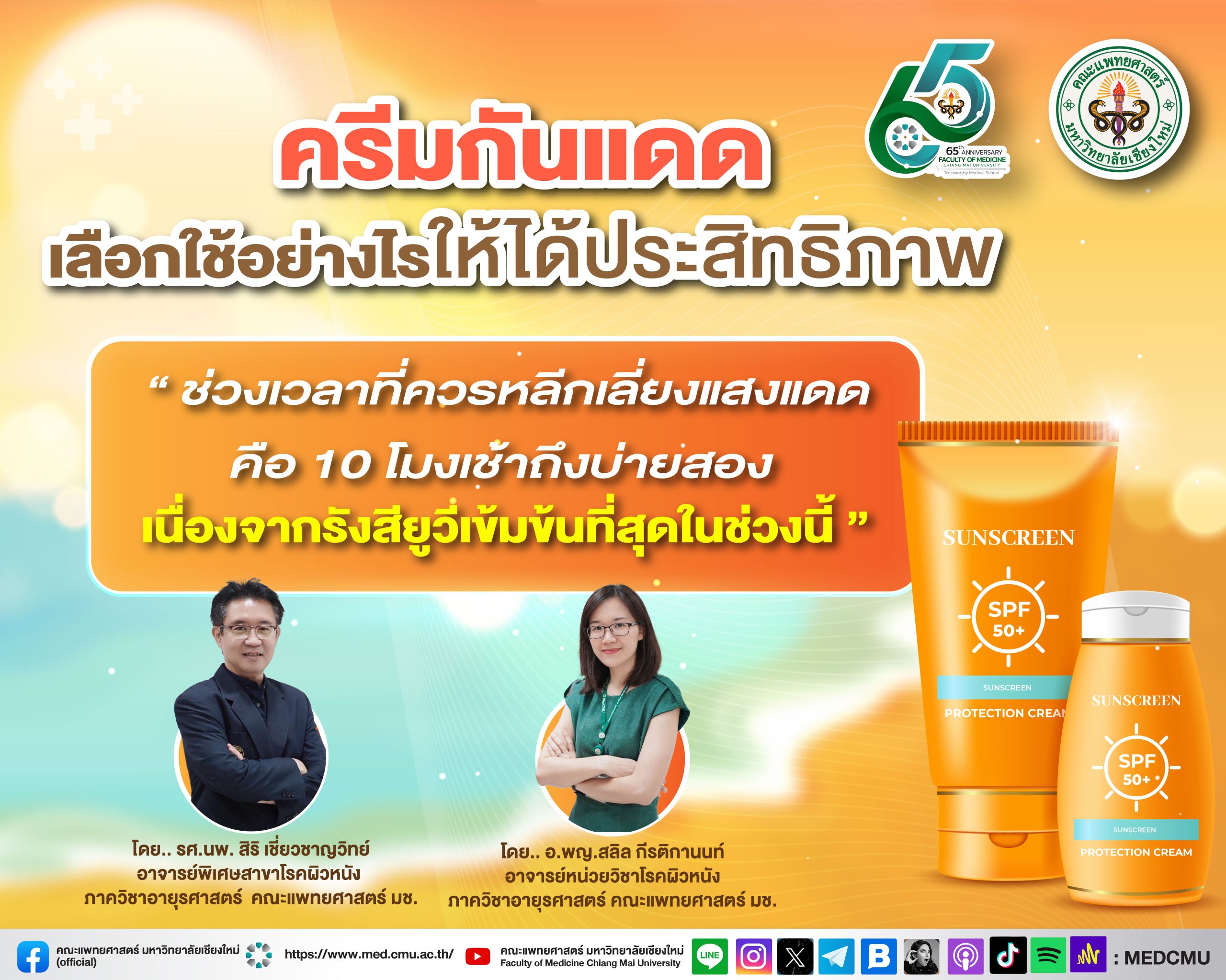 ขอขอบคุณข้อมูลจาก : รศ.นพ.สิริ เชี่ยวชาญวิทย์ อาจารย์พิเศษ สาขาโรคผิวหนัง ภาควิชาอายุรศาสตร์ คณะแพทยศาสตร์ มช. และ อ.พญ.สลิล กีรติกานนท์ อาจารย์หน่วยวิชาโรคผิวหนัง ภาควิชาอายุรศาสตร์ คณะแพทยศาสตร์ มช.