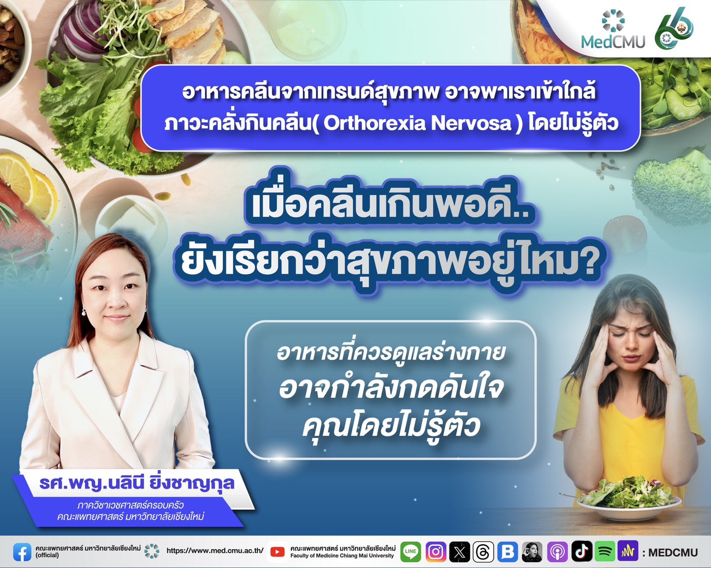 #MedCMU #คณะแพทยศาสตร์มหาวิทยาลัยเชียงใหม่ #แพทย์เชียงใหม่ #แพทย์มช #หมอสวนดอก #แพทย์สวนดอก #โรงพยาบาลสวนดอก #MedCMUในมือคุณ #สื่อสารองค์กรMedCMU #ภาวะคลั่งกินคลีน
