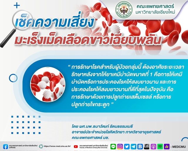ขอขอบคุณข้อมูลจาก:ผศ.นพ.ธนาวัฒก์ รัตนธรรมเมธี อาจารย์ประจำหน่วยโลหิตวิทยา ภาควิชาอายุรศาสตร์ คณะแพทยศาสตร์ มช.