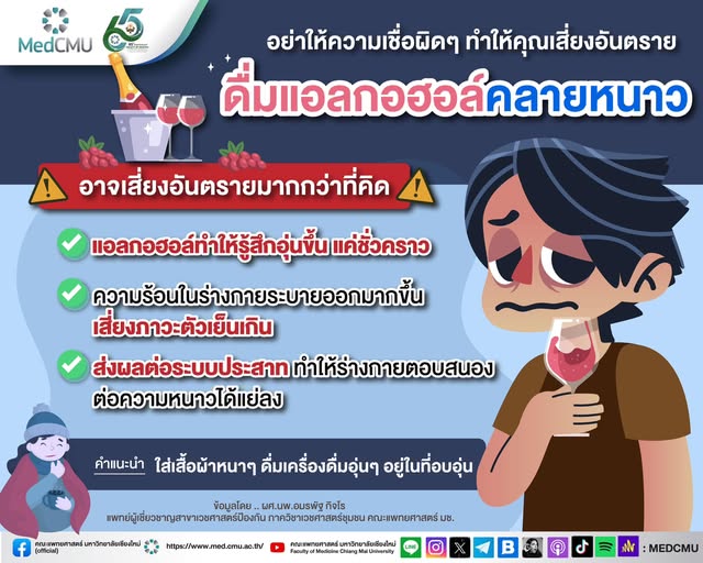 คำแนะนำ : ใส่เสื้อผ้าหนาๆ ดื่มเครื่องดื่มอุ่นๆ อยู่ในที่อบอุ่น