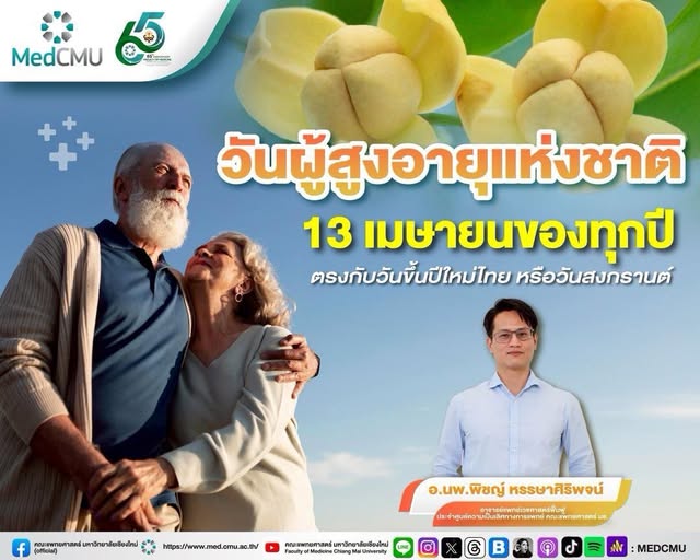 โอกาสนี้ คณะแพทยศาสตร์ มหาวิทยาลัยเชียงใหม่ จึงมีเคล็ดลับในการดูแลผู้สูงอายุมาแบ่งปัน เพื่อให้ทุกท่านมีความสุขกาย สบายใจ สุขภาพแข็งแรง อยู่กับลูกหลานอย่างมีความสุข