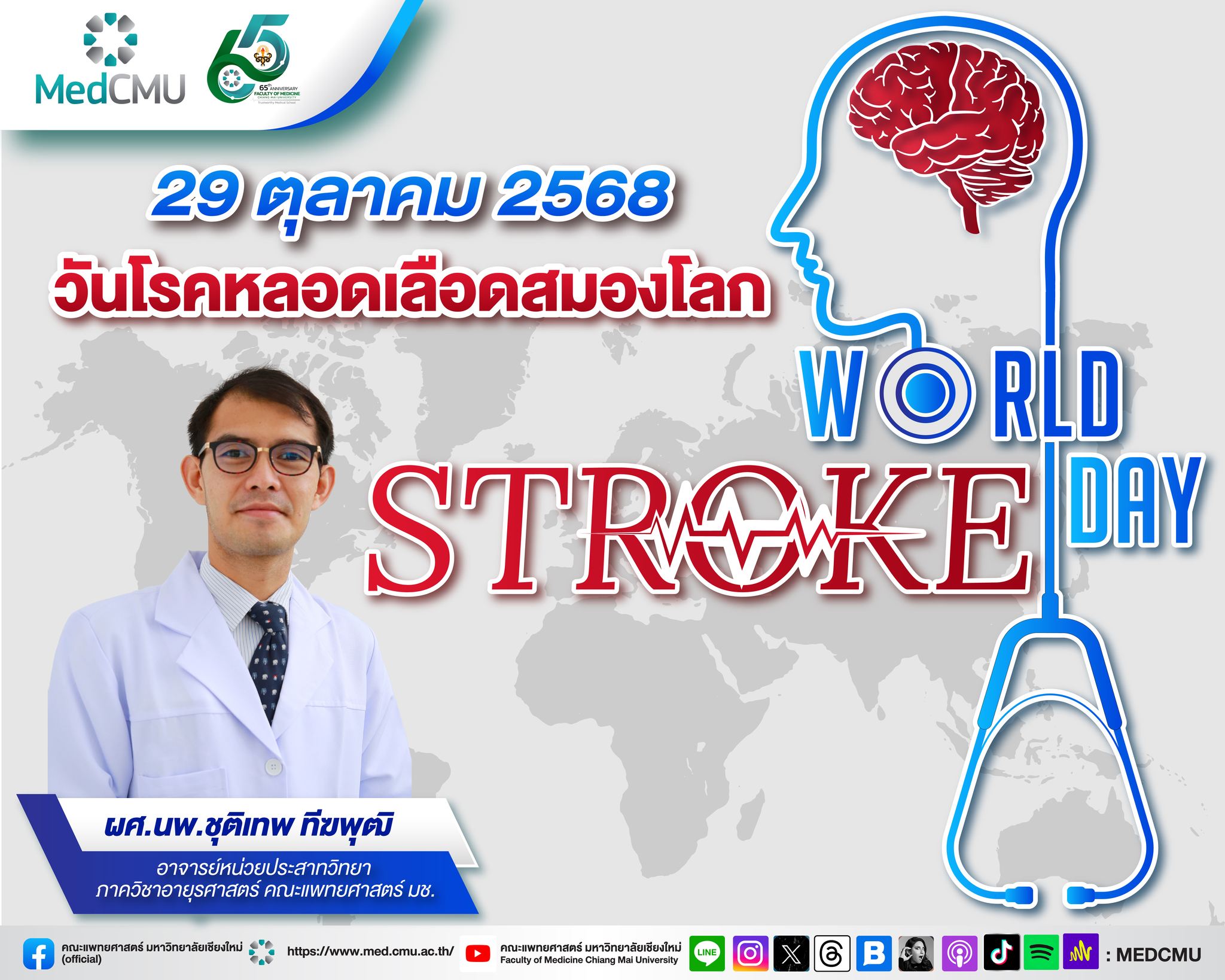 #วันโรคหลอดเลือดสมองโลก (World Stroke Day) #สุขภาพดีกับหมอสวนดอก #MedCMU #คณะแพทยศาสตร์มหาวิทยาลัยเชียงใหม่ #แพทย์เชียงใหม่ #แพทย์มช #หมอสวนดอก #โรงพยาบาลสวนดอก #Medcmuในมือคุณ #สื่อสารองค์กรMedcmu