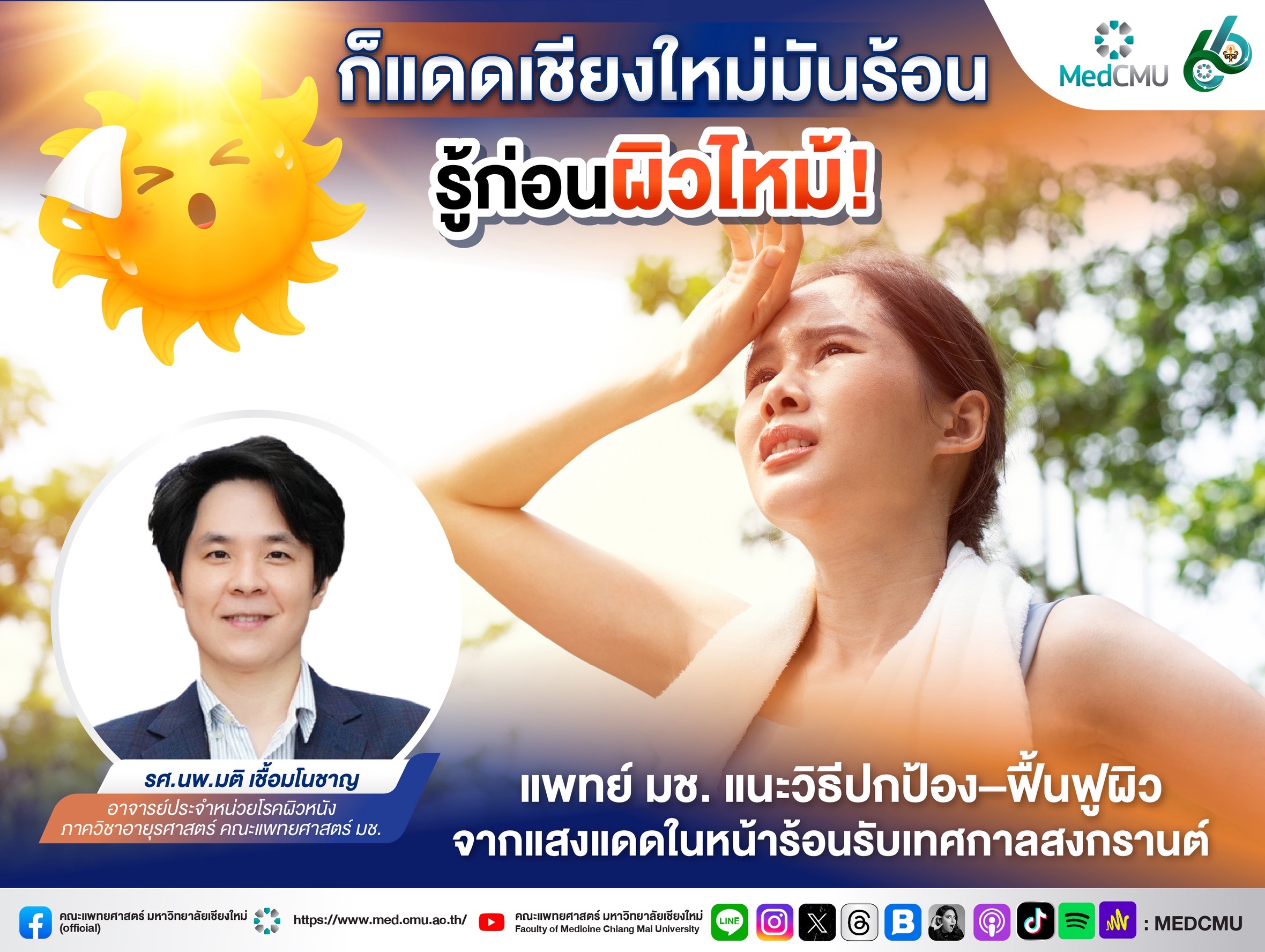 ก็แดดเชียงใหม่มันร้อน รู้ก่อนผิวไหม้! แพทย์ มช. แนะวิธีปกป้อง–ฟื้นฟูผิวจากแสงแดดในหน้าร้อน รับเทศกาลสงกรานต์