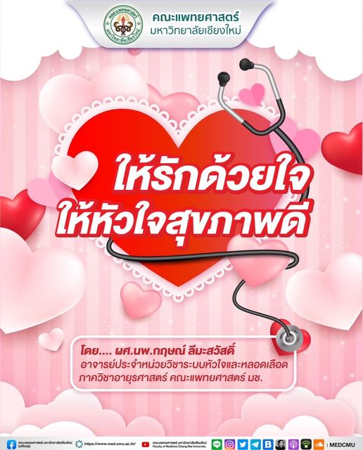 ขอขอบคุณข้อมูลจาก : ผศ.นพ.กฤษณ์ ลีมะสวัสดิ์ อาจารย์ประจำหน่วยวิชาระบบหัวใจและหลอดเลือด ภาควิชาอายุรศาสตร์ คณะแพทยศาสตร์ มช.