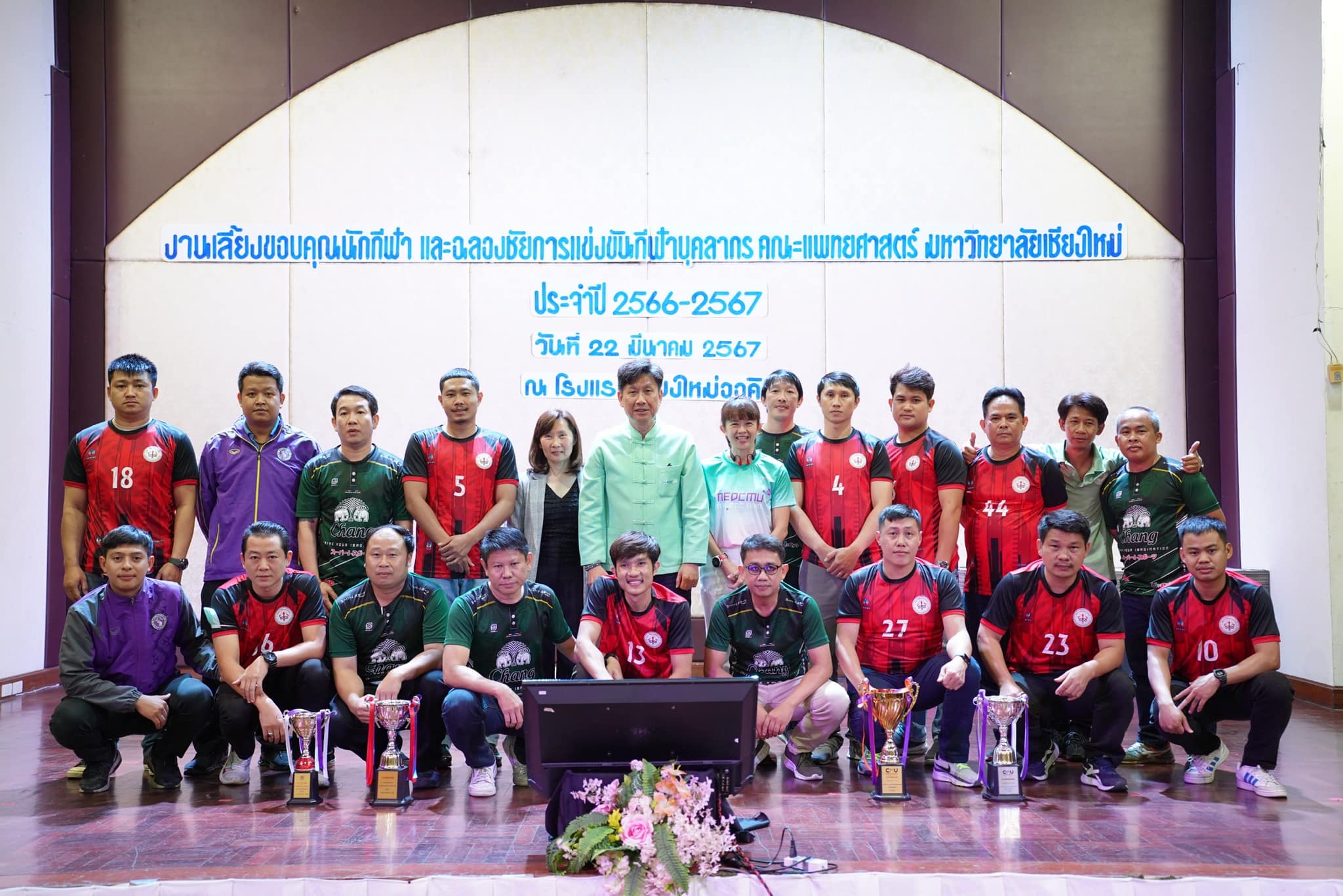 รศ.นพ.ณัฐพงศ์ โฆษชุณหนันท์ รองคณบดีคณะแพทยศาสตร์ มช. เป็นประธานในพิธีเปิดงานเลี้ยงขอบคุณนักกีฬาและฉลองชัยการแข่งขันกีฬาบุคลากรคณะแพทยศาสตร์ มช. ประจำปี 2566-2567 โดยมีทีมนักกีฬาที่ได้รับรางวัลทั้งหมด 17 ทีม พร้อมด้วยคณะผู้บริหาร คณาจารย์ และบุคลากรเข้าร่วมภายในงาน เพื่อสร้างความสัมพันธ์อันดีและร่วมส่งกำลังใจให้แก่นักกีฬา เมื่อวันที่ 22 มีนาคม 2567 ณ โรงแรมเชียงใหม่ออคิด อ.เมือง จ.เชียงใหม่