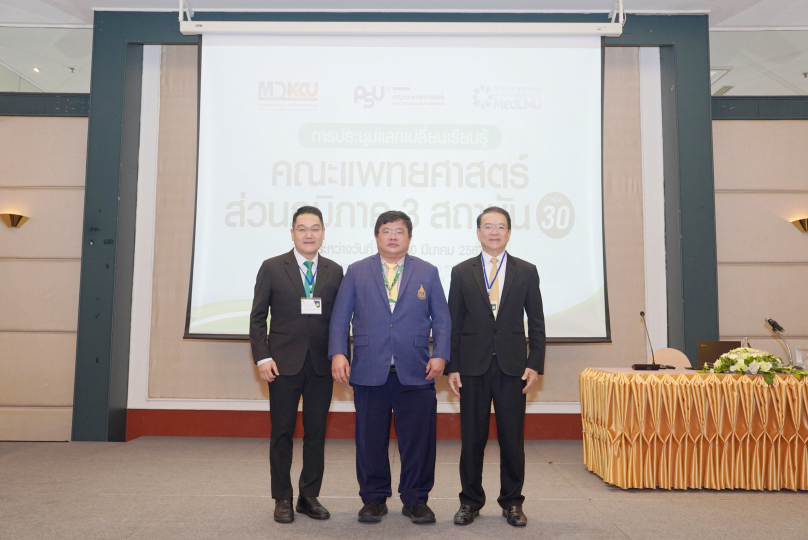 ศ.(เชี่ยวชาญพิเศษ)นพ.บรรณกิจ โลจนาภิวัฒน์ คณบดีคณะแพทยศาสตร์ มช. พร้อมคณะผู้บริหาร ร่วมประชุมแลกเปลี่ยนเรียนรู้ คณะแพทยศาสตร์ส่วนภูมิภาค 3 สถาบัน ครั้งที่ 30 โดยมี รศ.นพ.เรืองศักดิ์ ลีธนาภรณ์ คณบดีคณะแพทยศาสตร์ มหาวิทยาลัยสงขลานครินทร์ เป็นประธานในพิธีและกล่าวต้อนรับ พร้อมด้วย รศ.นพ.อภิชาติ จิระวุฒิพงศ์ คณบดีคณะแพทยศาสตร์ มหาวิทยาลัยขอนแก่น และคณะผู้บริหารจากทั้ง 3 สถาบัน เข้าร่วมประชุม เพื่อแลกเปลี่ยนเรียนรู้ด้านการวิจัย ด้านการศึกษา ด้านบริหาร และด้านบริการของโรงพยาบาล ระหว่างสถาบันแพทยศาสตร์ส่วนภูมิภาคทั้ง 3 สถาบัน โดยนำเสนอและแลกเปลี่ยนผลการปฏิบัติงานที่ประสบผลสำเร็จจากแต่ละสถาบัน ในระหว่างวันที่ 29-30 มีนาคม 2567 ณ ห้องสุคนธา ชั้น 6 โรงแรมเซ็นทารา หาดใหญ่ อ.หาดใหญ่ จ.สงขลา