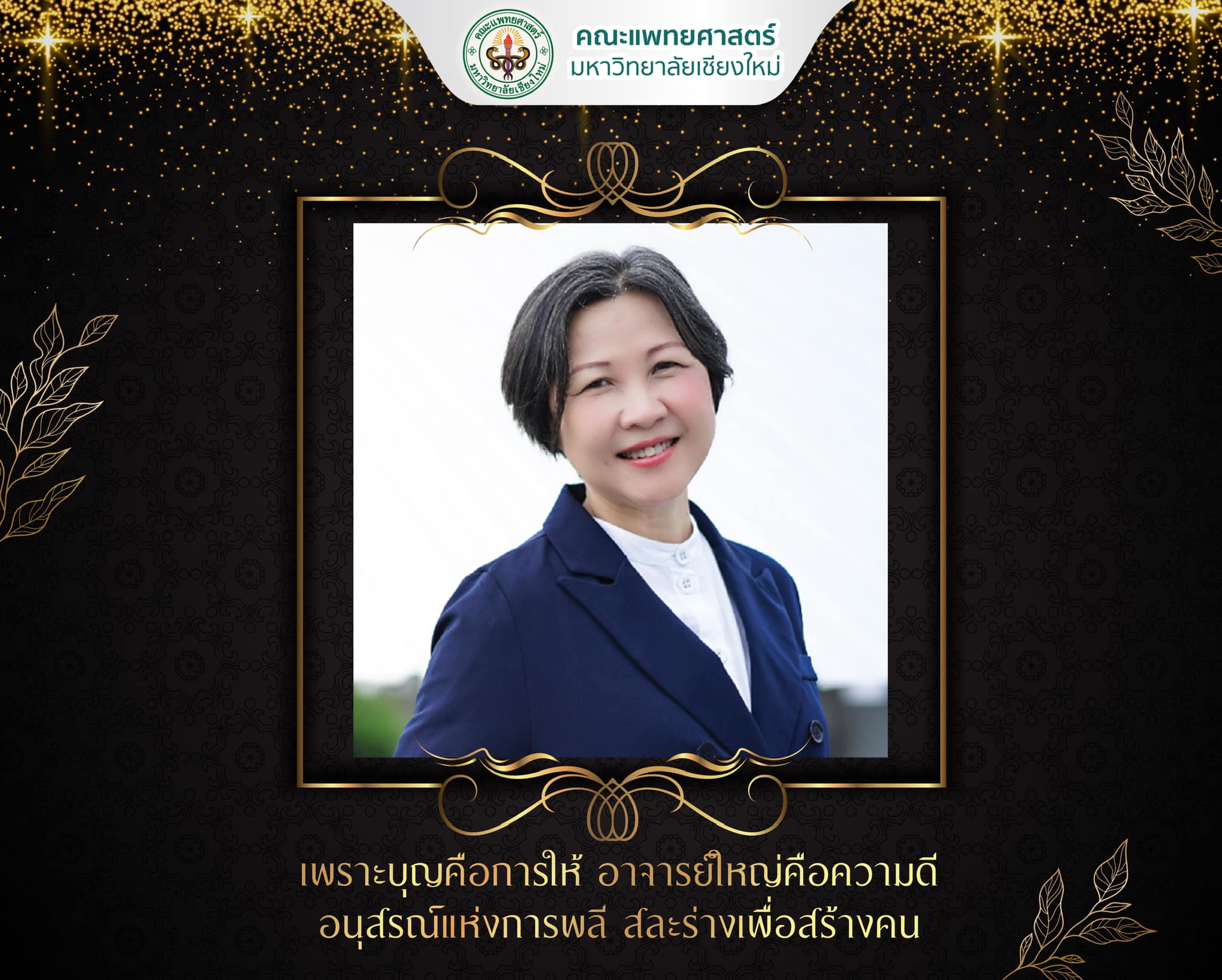 คณะแพทยศาสตร์ มช. ร่วมแสดงความเสียใจและอาลัยต่อการจากไปของ “ศาสตราจารย์ ดร.ระวิวรรณ โอฬารรัตน์มณี” คณบดีคณะสถาปัตยกรรมศาสตร์ มหาวิทยาลัยเชียงใหม่ ผู้มีคุณูปการต่อวงการศึกษาอย่างใหญ่หลวง ด้านครอบครัว ขอสร้างกุศลใหญ่ในวาระสุดท้ายของชีวิต ด้วยการอุทิศร่างฯ เป็นอาจารย์ใหญ่ เพื่อให้นักศึกษาแพทย์ มช. ได้ใช้ประโยชน์ทางการศึกษาต่อไป