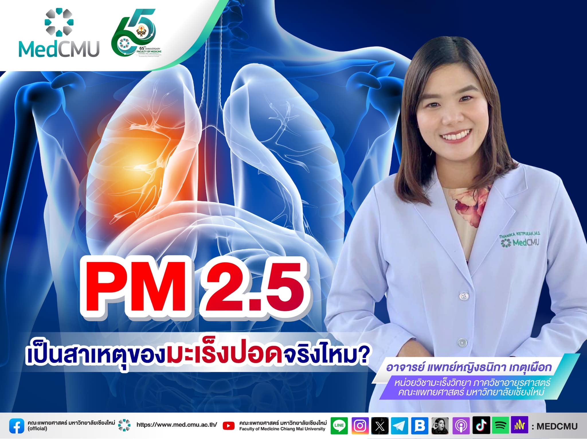 ดังนั้นจากการศึกษาทั้งหมดที่กล่าวมา สรุปได้ว่า PM 2.5 เป็นปัจจัยกระตุ้นให้เกิดมะเร็งปอด โดยเฉพาะในคนที่มีการกลายพันธุ์ของยีน EGFR และ KRAS อยู่แล้ว อย่างไรก็ตามจะเห็นได้ว่า PM 2.5 นั้นเป็น “ปัจจัยกระตุ้น” ไม่ใช่สาเหตุ และในปัจจุบันเราไม่สามารถบอกได้ชัดเจนว่า ในผู้ป่วยคนหนึ่งที่เป็นมะเร็งปอดนั้นมีสาเหตุจากอะไรได้แน่นอน เนื่องจากกระบวนการเกิดมะเร็งดังกล่าวซับซ้อนและเกิดได้จากหลายปัจจัยกระตุ้นดังที่กล่าวไว้ข้างต้น