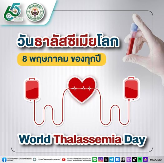 วันที่ 8 พฤษภาคม ของทุกปี เป็น “วันธาลัสซีเมียโลก (World Thalassemia Day)” เพื่อรณรงค์ให้เห็นถึงความสำคัญของโรคธาลัสซีเมียและผลกระทบของโรค และแสดงถึงความร่วมมือของชุมชนผู้ป่วยธาลัสซีเมียทั่วโลก สำหรับปี พ.ศ.2567 นี้ องค์กรธาลัสซีเมียนานาชาติ (Thalassaemia International Federation) ได้กำหนดหัวข้อของงานเป็น “Empowering Lives, Embracing Progress: Equitable and Accessible Thalassaemia Treatment for All.” เสริมคุณภาพชีวิต พัฒนาการเข้าถึงการรักษาแก่ผู้ป่วยธาลัสซีเมียทุกรายอย่างเท่าเทียม