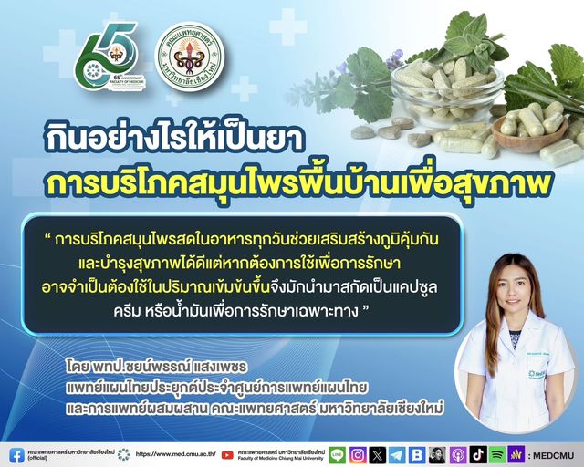 ขอบคุณข้อมูลจาก : พทป.ชยน์พรรณ์ แสงเพชร แพทย์แผนไทยประยุกต์ประจำศูนย์การแพทย์แผนไทยและการแพทย์ผสมผสาน คณะแพทยศาสตร์ มหาวิทยาลัยเชียงใหม่