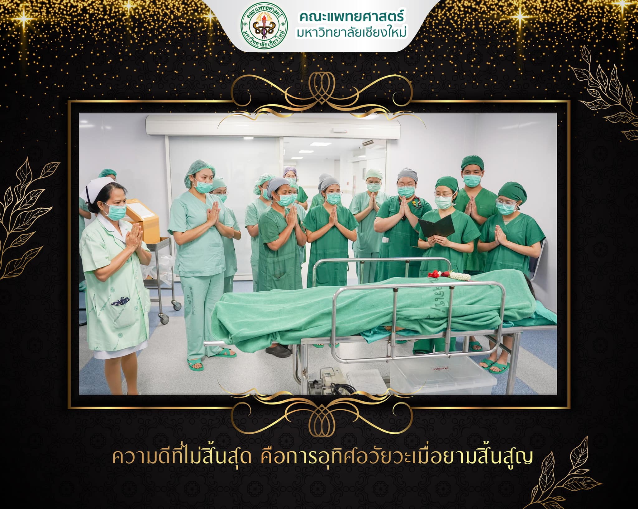 ทางครอบครัวมีความเห็นร่วมกันว่า มีความประสงค์จะบริจาคอวัยวะทุกส่วนของผู้เสียชีวิต ที่จะสามารถนำไปใช้ประโยชน์และส่งมอบโอกาสการรอดชีวิตกับผู้ที่รอคอย โรงพยาบาลมหาราชนครเชียงใหม่ และสภากาชาดไทย จึงได้ประสานงานร่วมกัน เพื่อส่งต่อลมหายใจให้กับผู้ป่วยที่รอรับการปลูกถ่ายอวัยวะ ให้กลับมามีชีวิตใหม่ที่ดีขึ้น