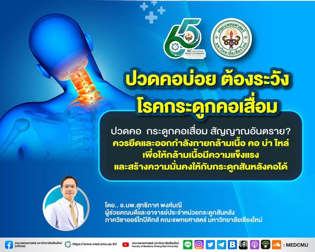 -ควรยืดและออกกำลังกายกล้ามเนื้อ คอ บ่า ไหล่ เพื่อให้กล้ามเนื้อมีความแข็งแรงและสร้างความมั่นคงให้กับกระดูกสันหลังคอได้