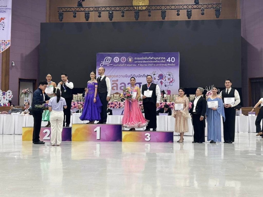 รศ.นพ.นเรนทร์ โชติรสนิรมิต ผู้อำนวยการโรงพยาบาลมหาราชนครเชียงใหม่ พร้อมด้วยผศ.ทพ.พิริยะ เชิดสถิรกุล รองอธิการบดีมหาวิทยาลัยเชียงใหม่ ร่วมพิธีเปิดการแข่งขันกีฬาบุคลากรมหาวิทยาลัยแห่งประเทศไทย ครั้งที่ 40 “อ่างแก้วเกมส์ 2024” พร้อมมอบเหรียญรางวัลและเกียรติบัตร แก่นักกีฬาลีลาศจากมหาวิทยาลัยที่เข้าร่วมแข่งขันกีฬาบุคลากรวิทยาลัยแห่งประเทศไทยครั้งที่ 40 “อ่างแก้วเกมส์ 2024” ในวันที่ 3 มิถุนายน 2567 ณ หอประชุมมหาวิทยาลัยเชียงใหม่