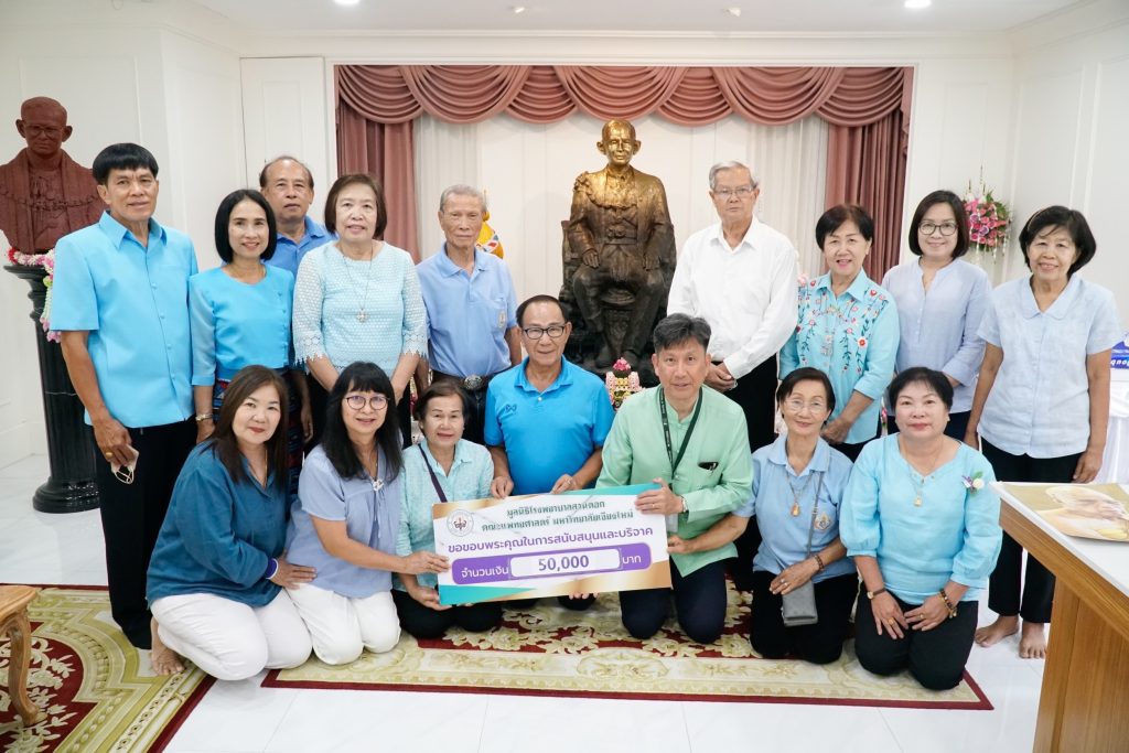 รศ.นพ.ณัฐพงศ์ โฆษชุณหนันท์ รองคณบดีคณะแพทยศาสตร์ มช. รับมอบเงินบริจาคจำนวน 50,000 บาท จากคุณดวงแก้ว สะอาดล้วน ประธานชมรมข้าราชการครูบำนาญ อ.ดอยสะเก็ด พร้อมคณะข้าราชการครูบำนาญ อ.ดอยสะเก็ด จ.เชียงใหม่ สมทบทุนมูลนิธิโรงพยาบาลสวนดอก เพื่อโครงการจัดซื้อครุภัณฑ์ทางการแพทย์อาคารสุจิณฺโณ ในวันที่ 15 สิงหาคม 2567 ณ ศาลาใต้ร่มพระบารมี ชั้น 1 อาคารสุจิณฺโณ คณะแพทยศาสตร์ มช.