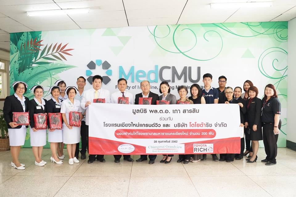 มูลนิธิ พล.ต.อ.เภา สารสิน ร่วมกับ โรงแรมเชียงใหม่แกรนด์วิว และบริษัท โตโยต้าริช จำกัด มอบผ้าห่มให้แก่โรงพยาบาลม