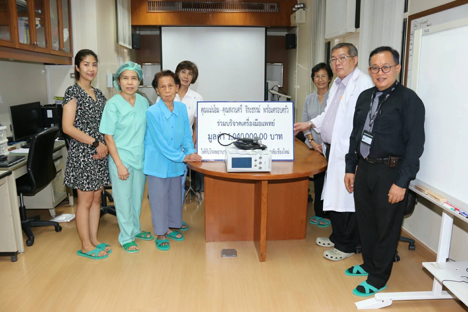 คุณน้อม และ คุณสงวนศรี จิระธรรม์ พร้อมครอบครัว บริจาคอุปกรณ์การแพทย์ (เครื่องเลื่อยตัดกระดูกหน้าอก ) จำนวน 1 เครื่อง มูลค่า 1,040,000 บาท ให้แก่หอผู้ป่วยหนักศัลยกรรมทรวงอก หัวใจและหลอดเลือด โรงพยาบาลมหาราชนครเชียงใหม่ โดยมี ศ.นพ.คม สุคนธสรรพ์ รองคณบดีคณะแพทยศาสตร์ มช. และ อ.นพ.สุรินทร์ วรกิจพูนผล หัวหน้าศูนย์โรคหัวใจภาคเหนือ คณะแพทยศาสตร์ มช. ร่วมรับมอบ เมื่อวันที่ 10 มิถุนายน 2562 ณ หอผู้ป่วยหนักศัลยกรรมทรวงอก หัวใจและหลอดเลือด ชั้น 3 อาคารศรีพัฒน์ คณะแพทยศาสตร์ มช.