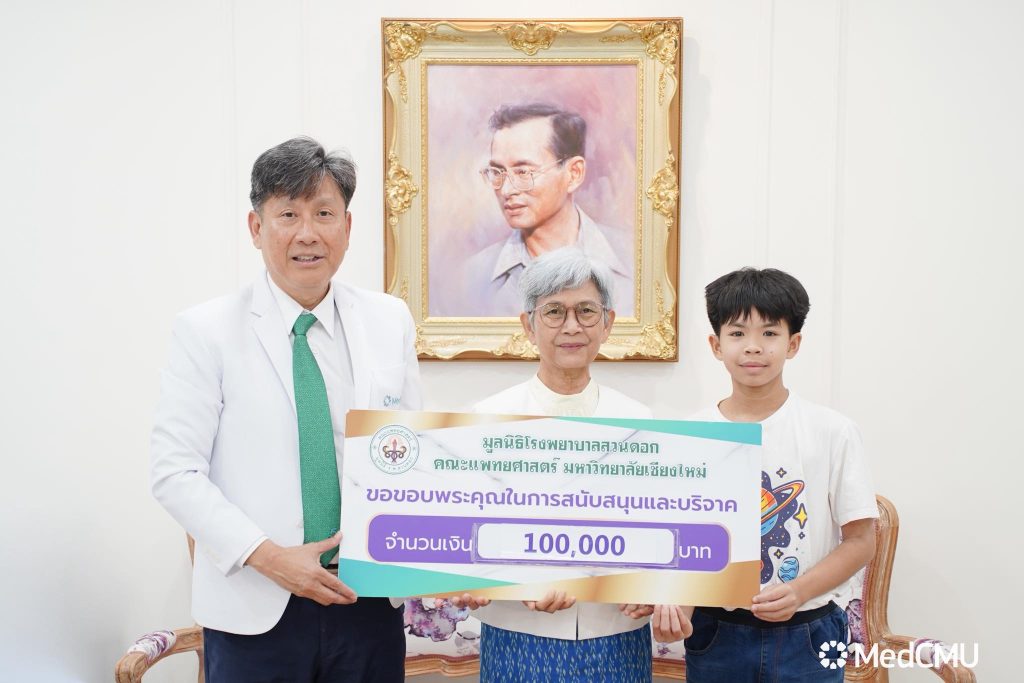 รศ.นพ.ณัฐพงศ์ โฆษชุณหนันท์ รองคณบดีด้านบริหารทั่วไป คณะแพทยศาสตร์ มหาวิทยาลัยเชียงใหม่ รับมอบเงินบริจาค จำนวน 100,000 บาท