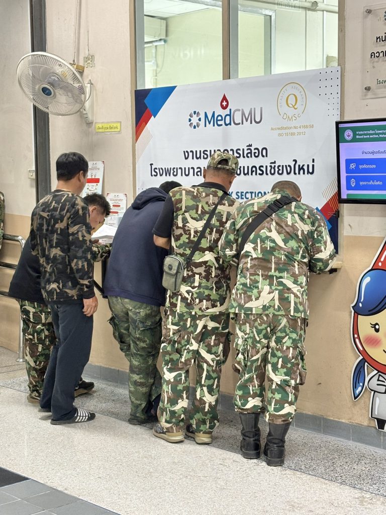 งานธนาคารเลือด โรงพยาบาลมหาราชนครเชียงใหม่ ได้เปิดรับบริจาคโลหิตและส่วนประกอบโลหิตเพื่อเตรียมเลือดสำรอง ส่งช่วยโรงพยาบาลชายแดน ไทย–กัมพูชา ที่กำลังรองรับผู้บาดเจ็บจากการสู้รบ โดยการเปิดรับบริจาคในวันนี้ได้รับความสนใจจากประชาชนชาวเชียงใหม่ รวมถึงบุคลากรจากหลายหน่วยงานที่ร่วมเดินทางมาบริจาคเป็นจำนวนมาก อาทิ สำนักบริหารพื้นที่อนุรักษ์ที่ 16 เชียงใหม่, วิทยาลัยเทคโนโลยีโปลิเทคนิคลานนา เชียงใหม่ และประชาชนทั่วไป สะท้อนถึงพลังน้ำใจของชาวเชียงใหม่ที่พร้อมยืนเคียงข้างผู้ประสบภัยในสถานการณ์สำคัญครั้งนี้