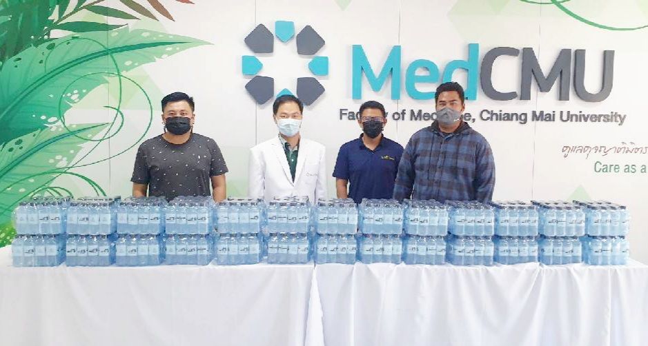 ผศ.นพ.สิทธิชา สิริอารีย์ รองผู้อำนวยการโรงพยาบาลมหาราชนครเชียงใหม่ รับมอบน้ำดื่ม จำนวน 60 แพ็ค จากโครงการเดอะปาล์มการ์เด้น ที่บริจาคให้แก่ทีมแพทย์ พยาบาล และบุคลากรที่ปฏิบัติหน้าที่ในสถานการณ์โควิด-19 ของโรงพยาบาลมหาราชนครเชียงใหม่ คณะแพทยศาสตร์ มช. เมื่อวันที่ 13 กรกฎาคม 2564 ณ บริเวณโถงชั้น 1 อาคารบุญสม มาร์ติน คณะแพทยศาสตร์ มช.
