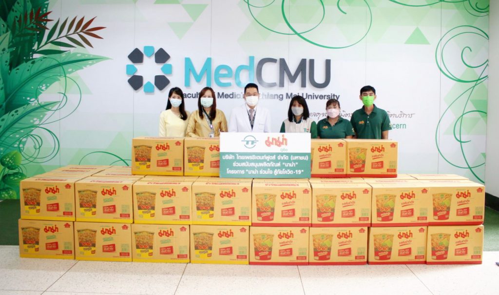 ศ.(เชี่ยวชาญพิเศษ)นพ.บรรณกิจ โลจนาภิวัฒน์ คณบดีคณะแพทยศาสตร์ มช. รับมอบบะหมี่กึ่งสำเร็จรูป มาม่าแบบถ้วย จำนวน 3,600 ถ้วย จากบริษัท ไทยเพรซิเดนท์ฟูดส์ จำกัด (มหาชน) ที่มอบให้แก่ทีมแพทย์ พยาบาล และบุคลากรที่ปฏิบัติหน้าที่ในสถานการณ์โควิด-19 ของโรงพยาบาลมหาราชนครเชียงใหม่ คณะแพทยศาสตร์ มช. เมื่อวันที่ 15 ตุลาคม 2564 ณ บริเวณโถงชั้น 1 อาคารบุญสม มาร์ติน คณะแพทยศาสตร์ มช.