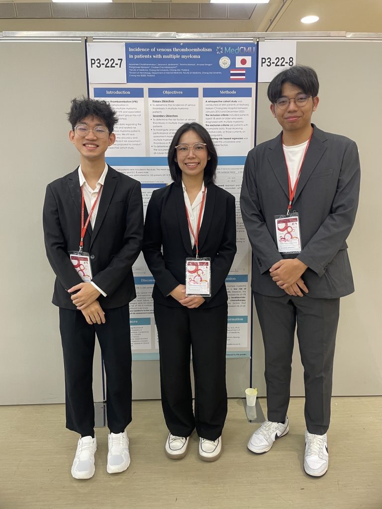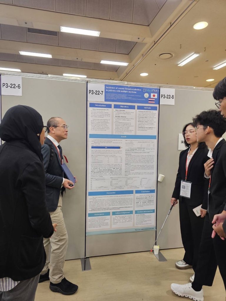 “Incidence of Venous Thromboembolism in Patients with Multiple Myeloma” ซึ่งเป็นการศึกษาความชุกของภาวะลิ่มเลือดอุดตัน การวินิจฉัย และแนวทางการรักษาในผู้ป่วยโรคมะเร็งเม็ดเลือดขาวชนิดมัยอีโลมา