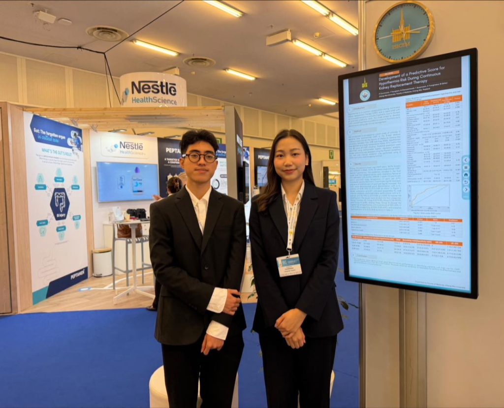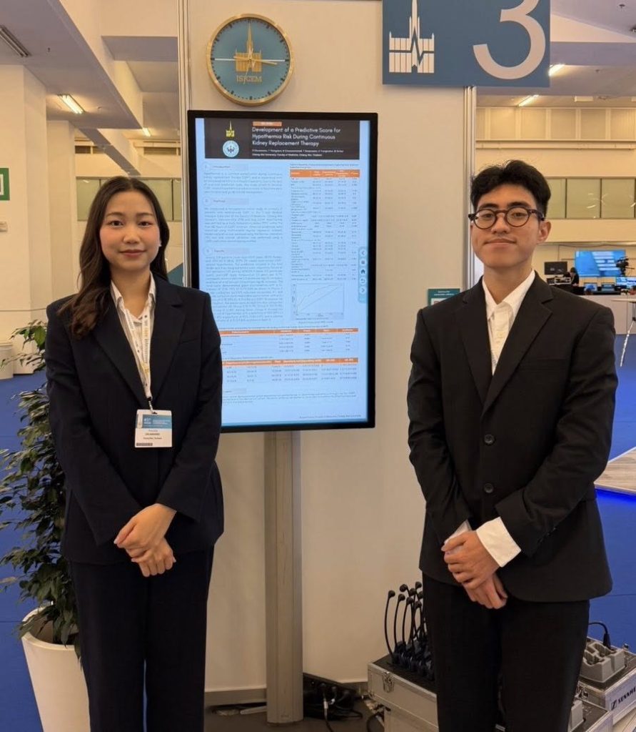โดยได้นำเสนอผลงานวิจัยในรูปแบบ E-Poster Presentation ในหัวข้อ Development of a Predictive Score for Hypothermia Risk During Continuous Kidney Replacement Therapy โดยมี รศ.ดร.นพ.กลวิชย์ ตรองตระกูล เป็นอาจารย์ที่ปรึกษาโครงการ, อ.กลวิชย์ ตรองตระกูล ภาควิชาอายุรศาสตร์ และอ.วชิรนันท์ ศิริกุล ภาควิชาเวชศาสตร์ชุมชน