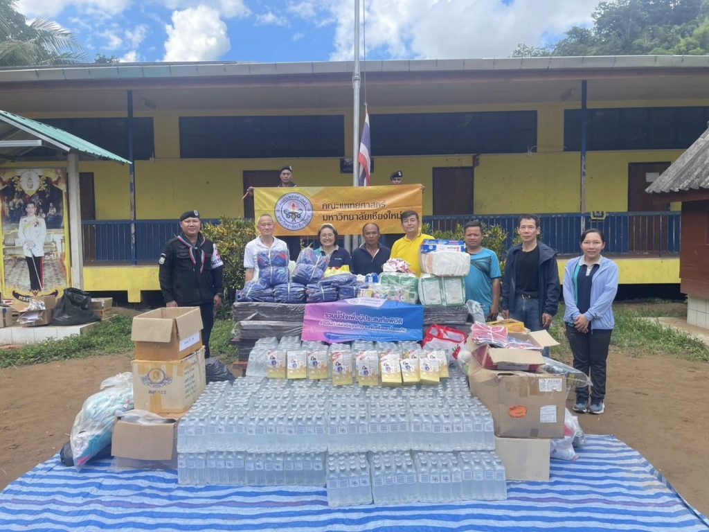 โดยได้เข้ามอบที่นอน จำนวน 32 ชุด นมและน้ำดื่ม รวมทั้งรองเท้าแตะจำนวน 4 โหล ตุ๊กตาเสื้อผ้าชุดใหม่ ให้แก่ผู้นำชุมชน และส่งมอบยารักษาโรคจำนวน 100 ชุด ให้แก่เจ้าหน้าที่อสม. เพื่อใช้ในศูนย์สาธารณสุขชุมชนซึ่งเสียหายทั้งหมดจากเหตุอุทกภัย เมื่อวันที่ 16 ตุลาคม 2568 ณ ชุมชนบ้านป่าหมาก ต.บ้านกาศ และ บ้านห้วยแห้ง ต.แม่คง อ.แม่สะเรียง จ.แม่ฮ่องสอน