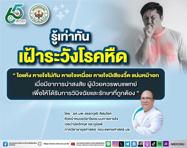 ขอขอบคุณข้อมูลจาก : รศ.นพ.อรรถวุฒิ ดีสมโชค หัวหน้าหน่วยวิชาโรคระบบการหายใจ เวชบำบัดวิกฤต และภูมิแพ้ ภาควิชาอายุรศาสตร์ คณะแพทยศาสตร์ มช.