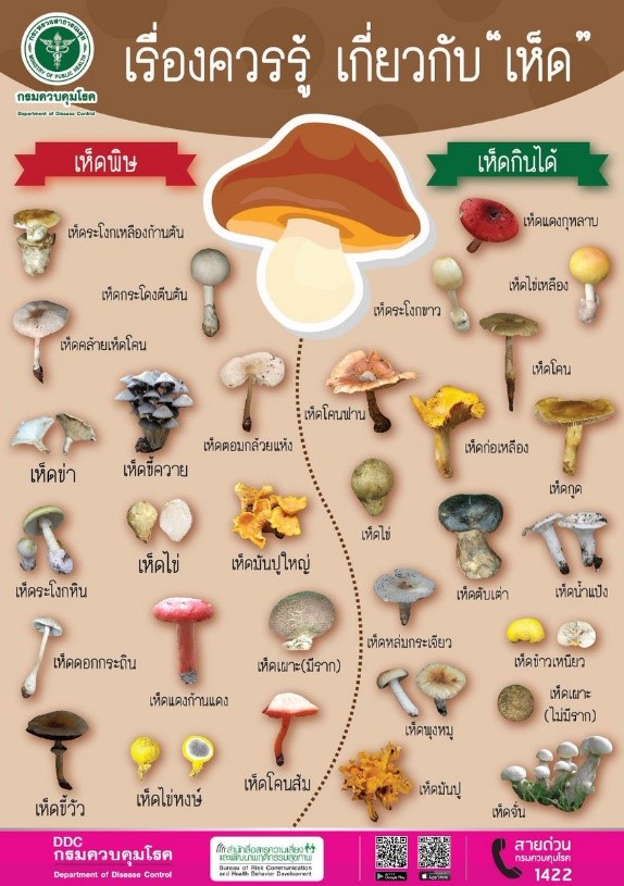 อากาศเย็นชุ่มฉ่ำในฤดูฝนเป็นช่วงที่เหมาะแก่การเจริญเติบโตของเห็ดมากที่สุด เริ่มมีเห็ดเกิดขึ้นตามธรรมชาติเป็นจำนวนมาก ทำให้ประชาชนในบางพื้นที่นิยมเก็บเห็ดไปขาย หรือรับประทานกันเองภายในครัวเรือน หากเราเผลอรับประทานเห็ดพิษเข้าไปก็อาจส่งผลอันตรายถึงชีวิตได้เช่นกัน โดยในแต่ละปีมักจะพบผู้ป่วยและผู้เสียชีวิตจากการรับประทานเห็ดพิษเป็นประจำ นับเป็นความสูญเสียที่ไม่น่าเกิดขึ้นเมื่อต้องพบว่ามีการเสียชีวิตจากการรับประทานเห็ดพิษทั้งครอบครัว