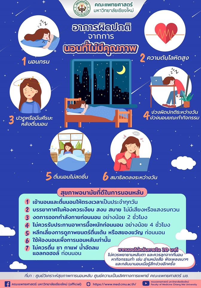 สิ่งสำคัญที่สุดทุกคนควรให้ความสำคัญกับการนอน และการนอนที่ดีจะต้องประกอบไปด้วยเวลานอนที่เพียงพอ เวลานอนที่เหมาะสม และการนอนที่มีคุณภาพ ถ้าเมื่อไหร่ที่เราไม่ให้ความสำคัญกับการนอนจะส่งผลเสียต่อสุขภาพกาย จิต และคุณภาพชีวิต