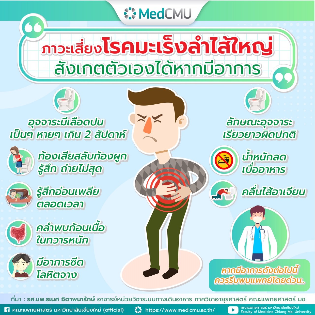 ข้อมูลโดยรศ.นพ.ธเนศ ชิตาพนารักษ์ อาจารย์ประจำหน่วยวิชาระบบทางเดินอาหาร ภาควิชาอายุรศาสตร์ คณะแพทยศาสตร์ มหาวิทยาลัยเชียงใหม่