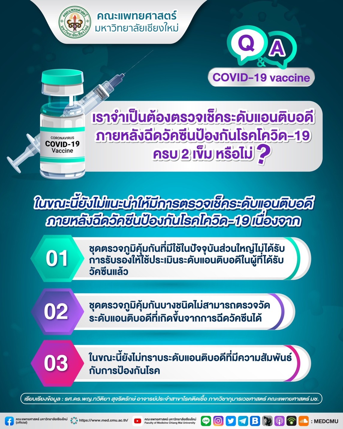 ❓ เราจำเป็นต้องตรวจเช็คระดับแอนติบอดี ภายหลังฉีดวัคซีนป้องกันโรคโควิด-19 ครบ 2 เข็ม หรือไม่ ?