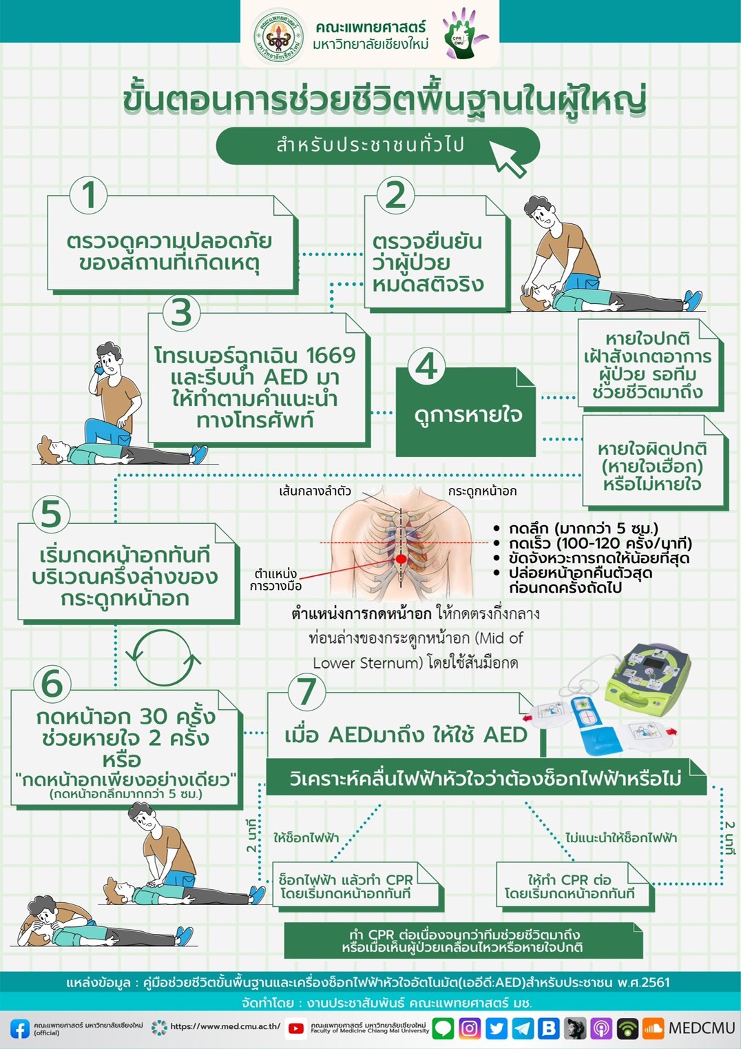 ??⚕️ข้อมูลโดย ผศ.ดร.นพ.บวร วิทยชำนาญกุล อาจารย์ประจำภาควิชาเวชศาสตร์ฉุกเฉิน คณะแพทยศาสตร์ มหาวิทยาลัยเชียงใหม่ และคู่มือช่วยชีวิตขั้นพื้นฐานและเครื่องช็อกไฟฟ้าหัวอัตโนมัติ(เออีดี:AED)สำหรับประชาชน พศ.2561