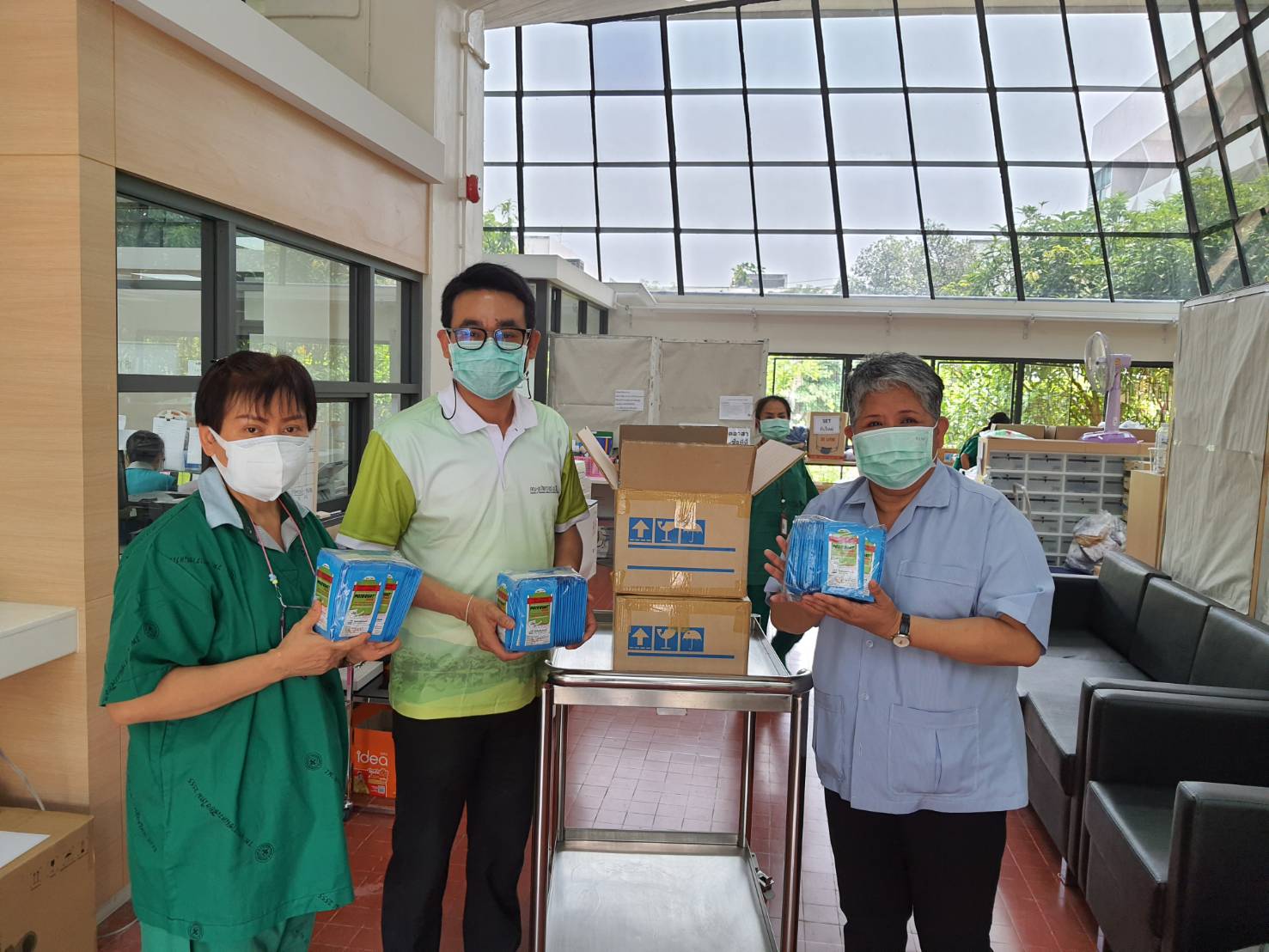 คุณบุปผา จันทร์เที่ยง พร้อมเพื่อนๆ ตลาดเมืองใหม่ บริจาคอาหารกล่องและถั่วต้ม จำนวน 84 ชุด ให้แก่ทีมแพทย์ , บุคลากร และบุคลากรที่ปฏิบัติหน้าที่ในสถานการณ์ COVID-19 ของโรงพยาบาลมหาราชนครเชียงใหม่ โดยมี ผศ.นพ.นเรนทร์ โชติรสนิรมิต ผู้อำนวยการโรงพยาบาลมหาราชนครเชียงใหม่ และผศ.นพ.ธนินนิตย์ ลีรพันธ์ ผู้อำนวยการศูนย์ศรีพัฒน์ รับมอบ เมื่อวันที่ 23 เมษายน 2564 ณ บริเวณโถงชั้น 1 อาคารบุญสม มาร์ติน คณะแพทยศาสตร์ มช.