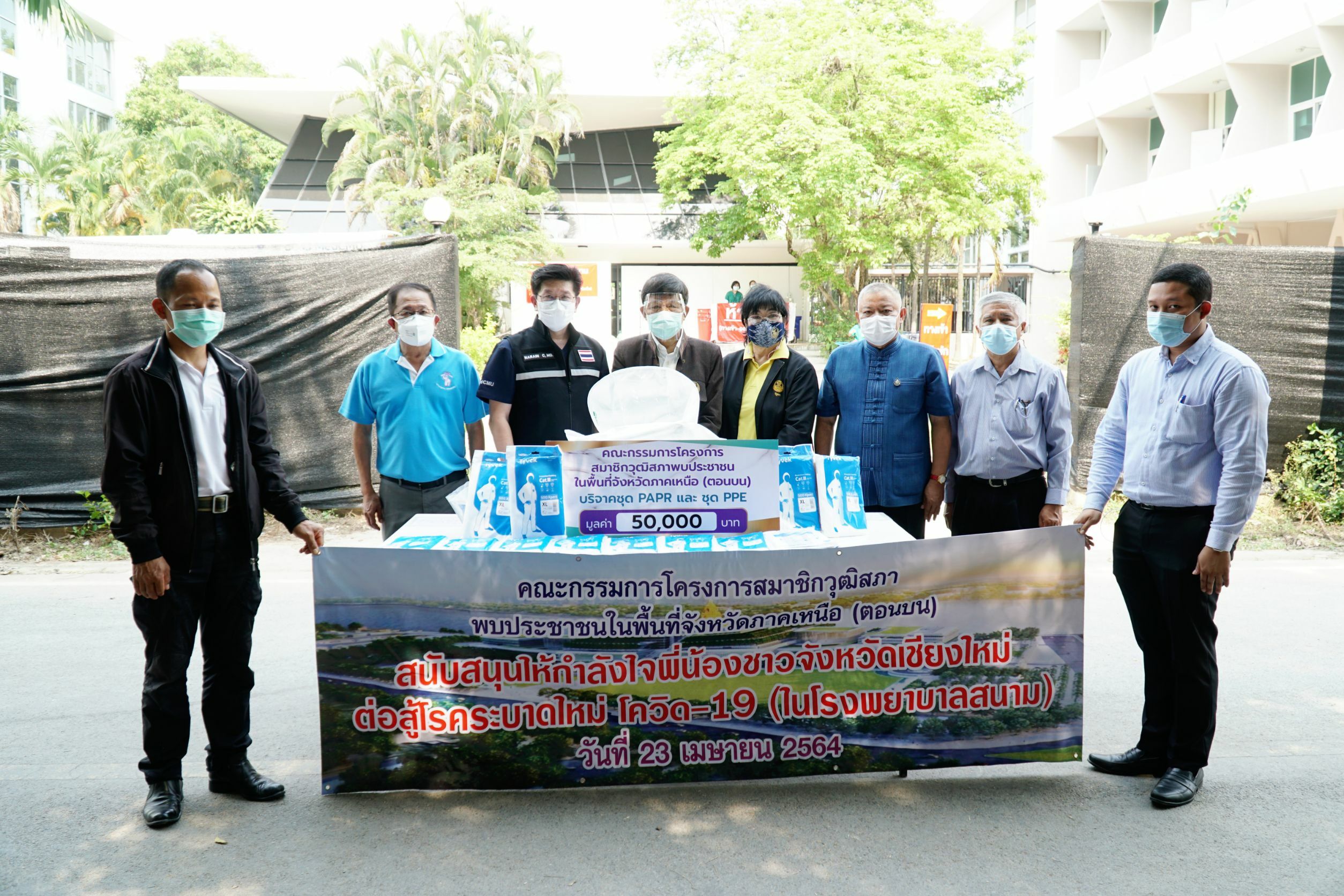 สมาชิกวุฒิสภาพบประชาชนในพื้นที่จังหวัดภาคเหนือ (ตอนบน) นำโดยคุณวีระพันธ์ ดีอ่อน รองผู้ว่าราชการจังหวัดเชียงใหม่บริจาคชุด PAPR และ ชุด PPE มูลค่า 50,000 บาท ให้แก่ทีมแพทย์ , บุคลากร และบุคลากรที่ปฏิบัติหน้าที่ในสถานการณ์ COVID-19 ของโรงพยาบาลมหาราชนครเชียงใหม่ โดยมี รศ.ประเสริฐ ฤกษ์เกรียงไกร รองอธิการบดี มหาวิทยาลัยเชียงใหม่ และผศ.นพ.นเรนทร์ โชติรสนิรมิต ผู้อำนวยการโรงพยาบาลมหาราชนครเชียงใหม่ ร่วมรับมอบ เมื่อวันที่ 23 เมษายน 2564 ณ โรงพยาบาลสนามเชียงใหม่ 2 (หอหญิง 5 ) มหาวิทยาลัยเชียงใหม่