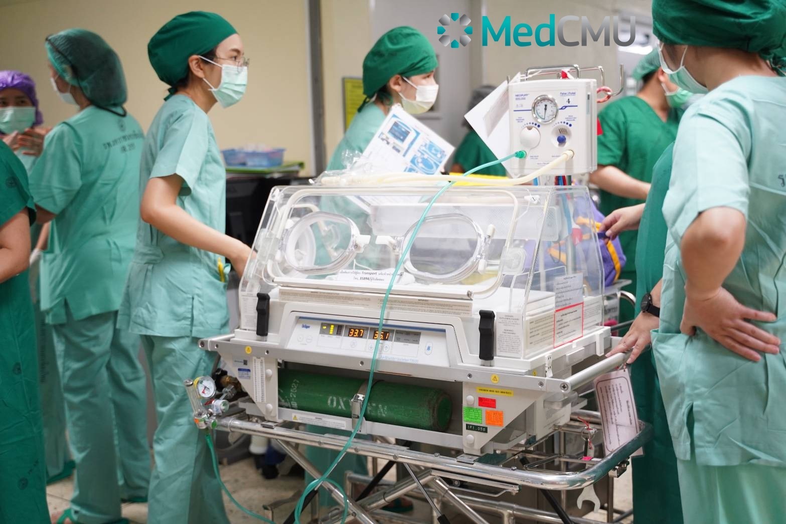 ผศ.นพ.นเรนทร์ โชติรสนิรมิต ผู้อำนวยการ โรงพยาบาลมหาราชนครเชียงใหม่ เปิดเผยว่า “ รพ.มหาราชนครเชียงใหม่ ได้รับการประสานว่ามีผู้ป่วยหญิงที่ครบกำหนดคลอด 39 สัปดาห์ อายุ 33 ปี มีอาการปวดท้องรุนแรงจากการที่มดลูกหดตัวเริ่มจะมีอาการใกล้คลอด ซึ่งจากการตรวจสอบพบว่าผู้ป่วยรายนี้มีการติดเชื้อโควิด19 ทำให้ทางโรงพยาบาลต้องวางแแผนการดูแลรักษาและเตรียมการผ่าตัดคลอดอย่างเร่งด่วนตั้งแต่กระบวนการรับผู้ป่วยจากจุดรับเข้าด้วยแคปซูลเคลื่อนย้ายผู้ป่วยติดเชื้อความดันลบสำหรับป้องกันการแพร่กระจายของเชื้อระหว่างการเคลื่อนย้ายผู้ป่วย จนถึงห้องผ่าตัดเพื่อให้มีประสิทธิภาพและมีความปลอดภัยอย่างสูงสุด ทันทีที่ทราบทางรพ.มหาราชนครเชียงใหม่ได้ประสานทีมสหวิชาชีพแพทย์และเตรียมความพร้อมร่วมทีมสูตินรีเวชวิทยา ทีมวิสัญญีแพทย์ และทีมกุมารแพทย์ โดยมีรศ.นพ.กิตติภัต เจริญขวัญ หัวหน้าภาควิชาสูติศาสตร์และนรีเวชวิทยา ,ผศ.พญ.ฌานิกา โกษารัตน์ ภาควิชากุมารเวชศาสตร์ และรศ.พญ.นุชนารถ บุญจึงมงคล หัวหน้าภาควิสัญญีวิทยา และทีมอื่นๆที่เกี่ยวข้อง พร้อมทั้งปิดกั้นพื้นที่ภายในโรงพยาบาลเพื่อให้เกิดความปลอดภัยที่สุดสำหรับผู้ป่วยในทันที