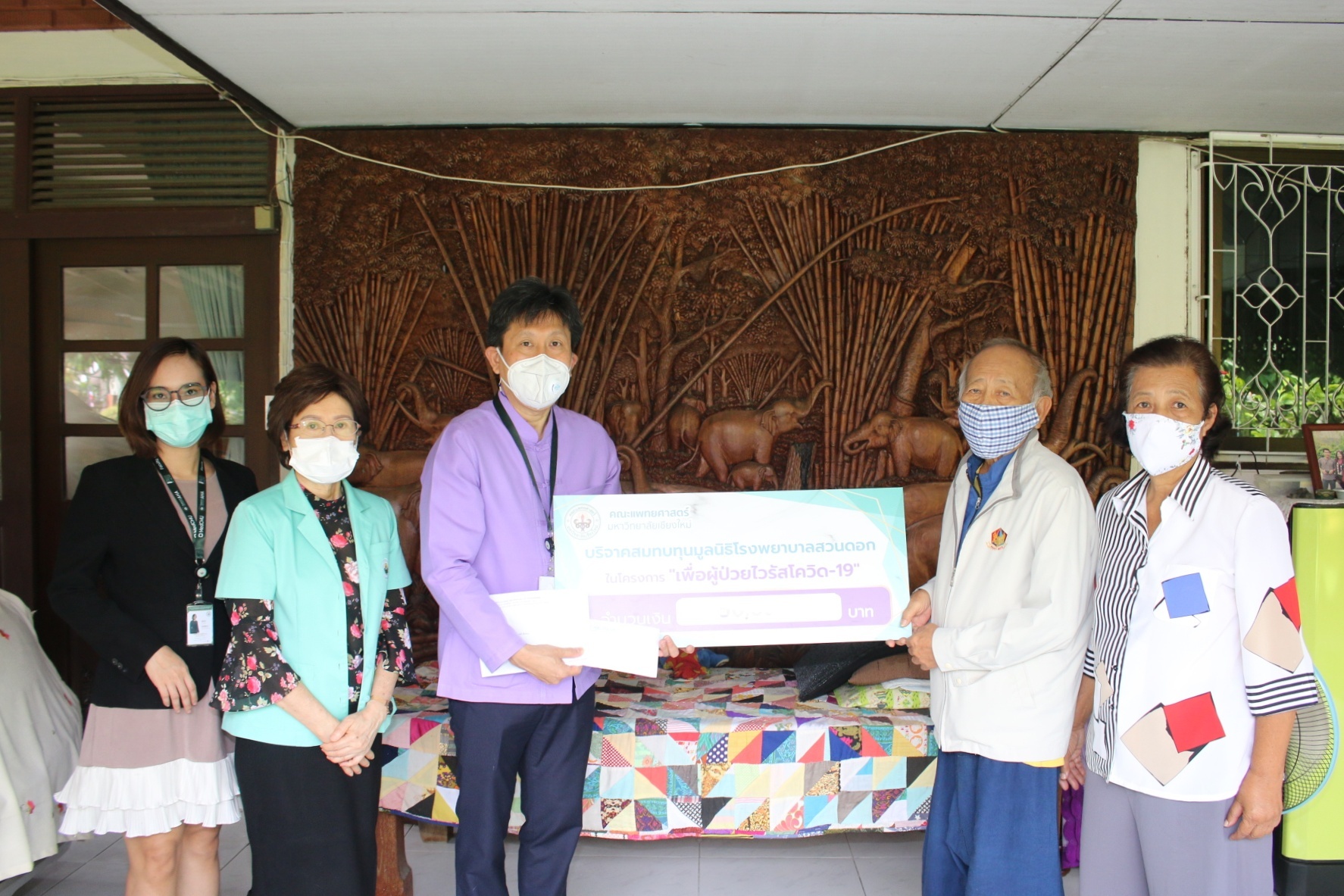 พ.ต.อ.ประสงค์ และคุณสมถวิล เย็นบำรุง บริจาคเงินจำนวน 50,000 บาท สมทบทุนมูลนิธิโรงพยาบาลสวนดอก เพื่อผู้ป่วยไวรัส covid-19 โดยมี รศ.นพ. ณัฐพงศ์ โฆษชุณหนันท์ รองคณบดีคณะแพทยศาสตร์ มช. รับมอบ เมื่อวันที่ 27 เมษายน 2564 ณ บ้านพัก อ.เมืองเชียงใหม่ จ.เชียงใหม่