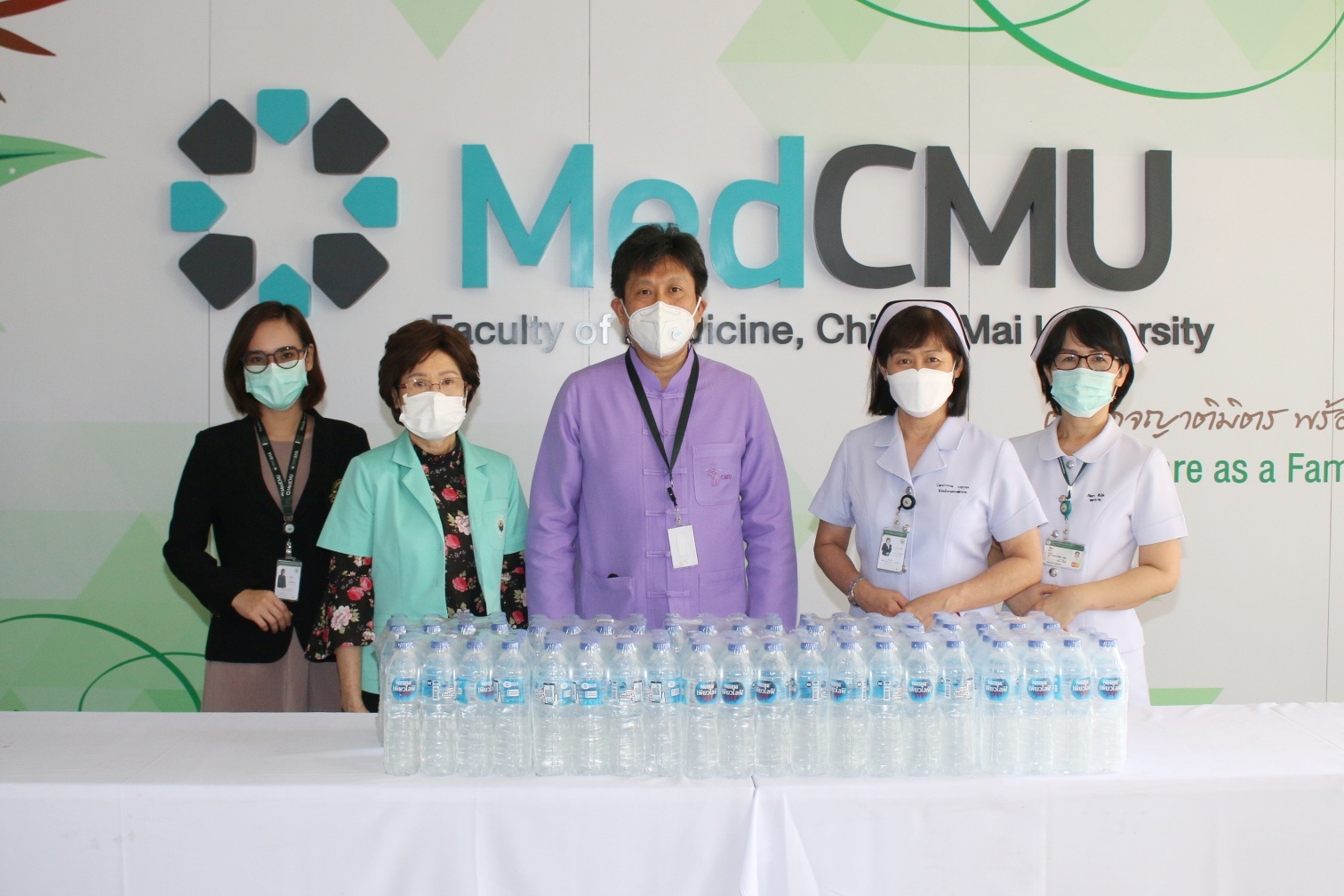 พ.ต.อ.ประสงค์ และคุณสมถวิล เย็นบำรุง บริจาคน้ำดื่มจำนวน 120 ขวด ให้แก่โรงพยาบาลมหาราชนครเชียงใหม่ คณะแพทยศาสตร์ มช. ให้แก่ทีมแพทย์ บุคลากรที่ปฏิบัติหน้าที่ในสถานการณ์โควิด-19 ของโรงพยาบาลมหาราชนครเชียงใหม่ โดยมี รศ.นพ.ณัฐพงศ์ โฆษชุณหนันท์ รองคณบดีคณะแพทยศาสตร์ มช. รับมอบ เมื่อวันที่ 27 เมษายน 2564 ณ บริเวณโถง ชั้น 1 สำนักงานผู้อำนวยการ อาคารบุญสม มาร์ติน คณะแพทยศาสตร์ มช.