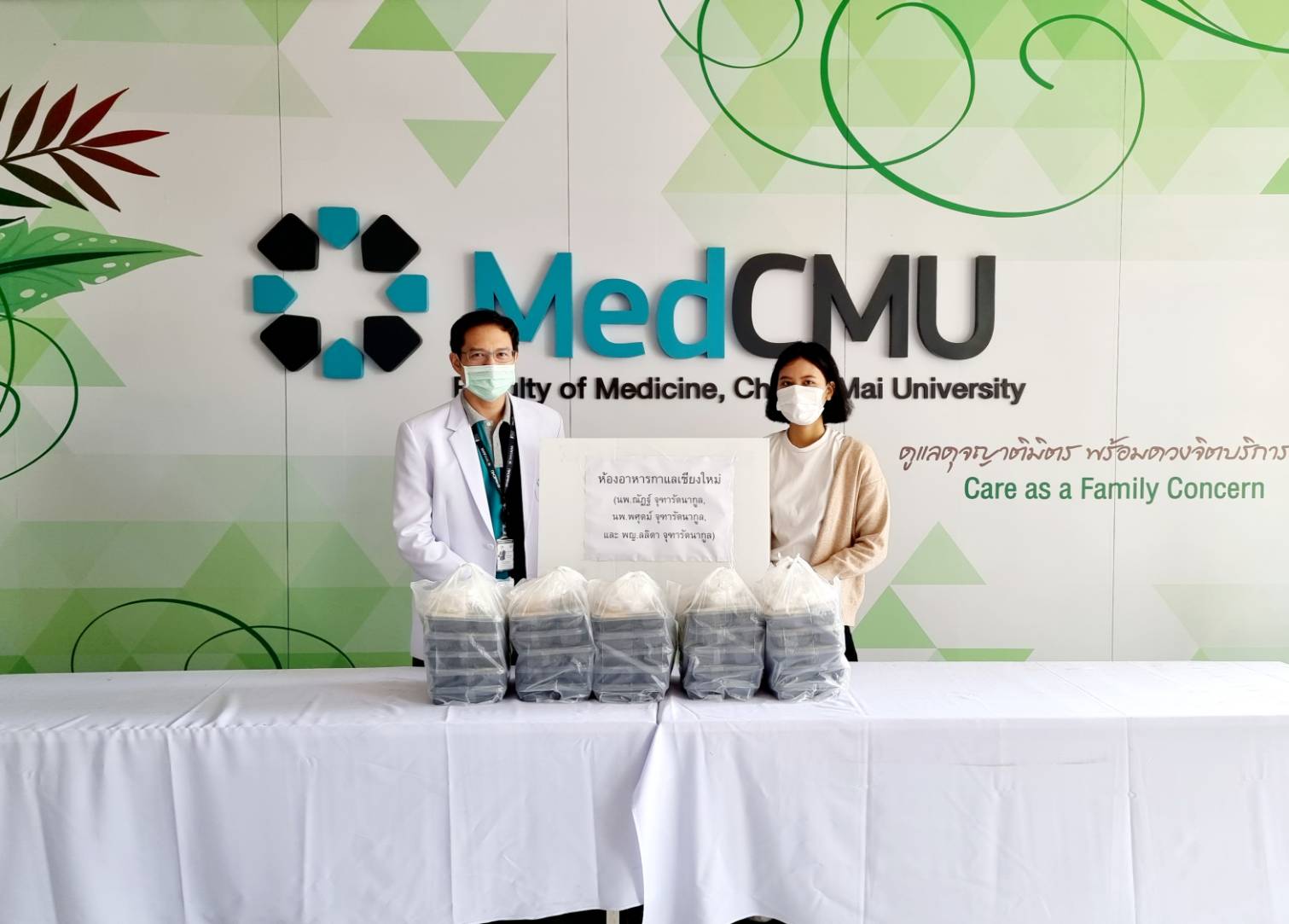 ห้องอาหารกาแลเชียงใหม่ โดย นพ.ณัฎฐ์ – นพ.พศุตม์ – พญ. ลลิตาจุฑารัตน์ บริจาคข้าวกล่อง จำนวน 50 กล่อง ให้แก่ทีมแพทย์ และบุคลากรที่ปฏิบัติหน้าที่ในสถานการณ์ COVID-19 ของโรงพยาบาลมหาราชนครเชียงใหม่