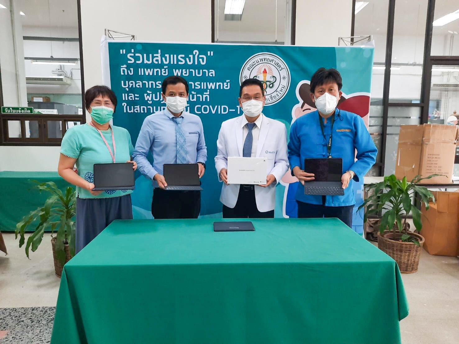 บริษัท Huawei ประเทศไทย จำกัด บริจาคแท็บเล็ต จำนวน 20 เครื่อง ให้แก่คณะแพทยศาสตร์มช. เพื่อใช้ประโยชน์ในการรักษาผู้ป่วย covid-19 ที่โรงพยาบาลมหาราชนครเชียงใหม่ และโรงพยาบาลสนามเชียงใหม่ 2 (หอหญิง 5) โดยมี ศ.(เชี่ยวชาญพิเศษ)นพ.บรรณกิจ โลจนาภิวัฒน์ คณบดี รศ.นพ.ณัฐพงศ์ โฆษชุณหนันท์ และ ผศ นพ กฤกษ์ ขวัญเงิน รองคณบดีคณะแพทยศาสตร์ มช. ร่วมรับมอบ เมื่อวันที่ 30 เมษายน 2564 ณ บริเวณโถง ชั้น 1 อาคารราชนครินทร์ คณะแพทยศาสตร์ มช.